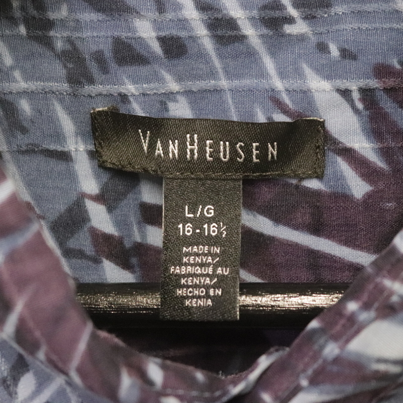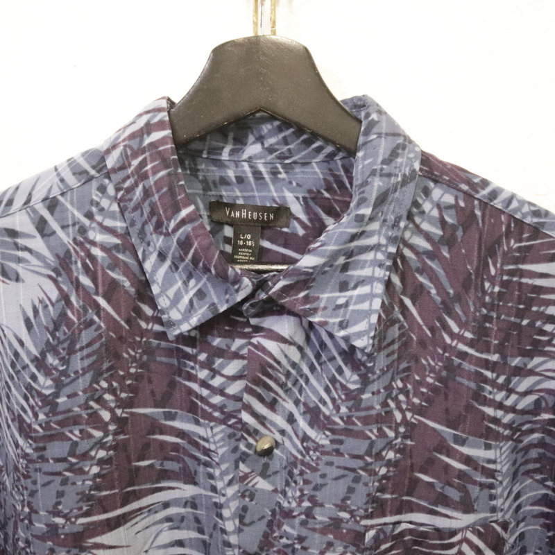 商品名 G745 2000年代製 VANHEUSEN 半袖シャツ■00s 表記Lサイズ ブルー ボタニカル 総柄 アメカジ ストリート 古着 古着卸 ヴィンテージ 激安