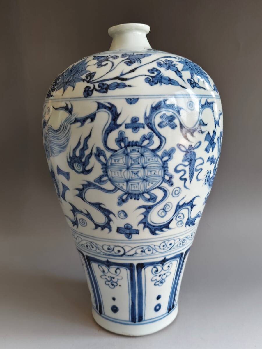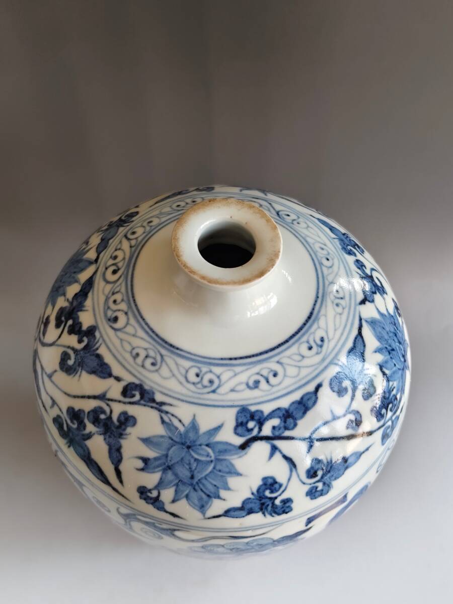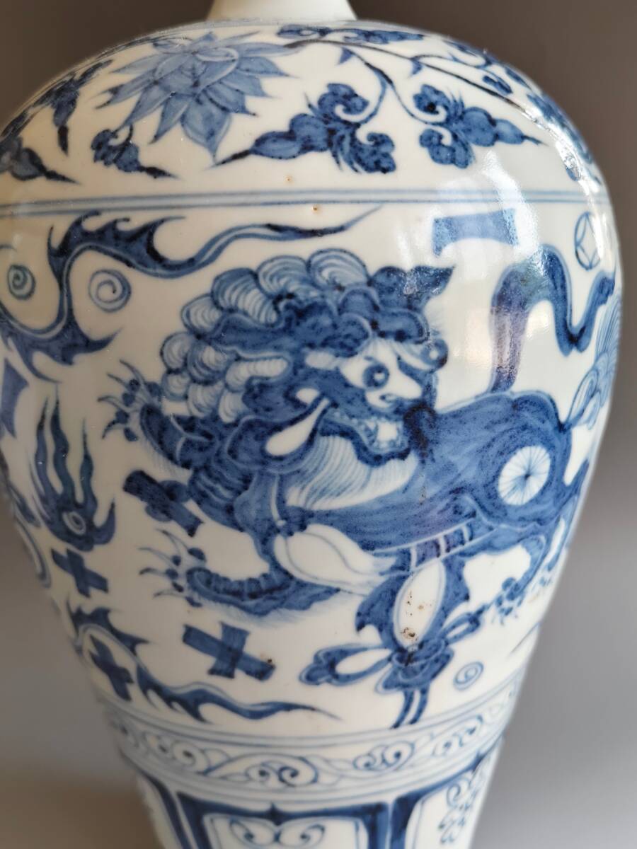 明代の青花纏枝蓮双獅滾毬梅瓶