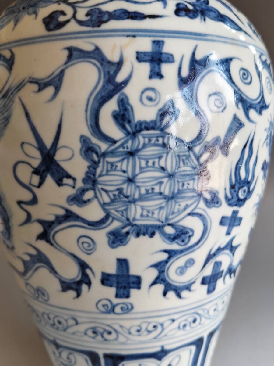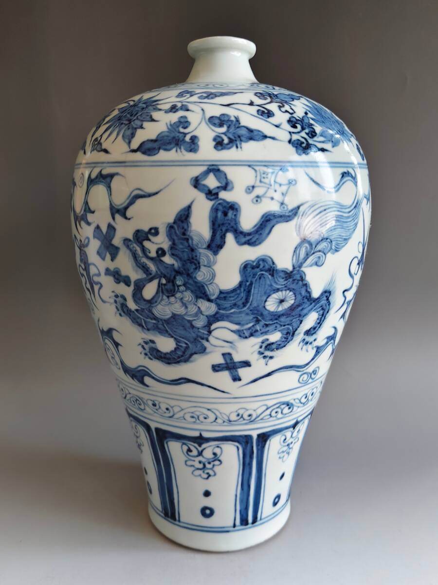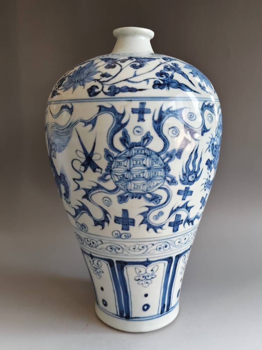 明代の青花纏枝蓮双獅滾毬梅瓶