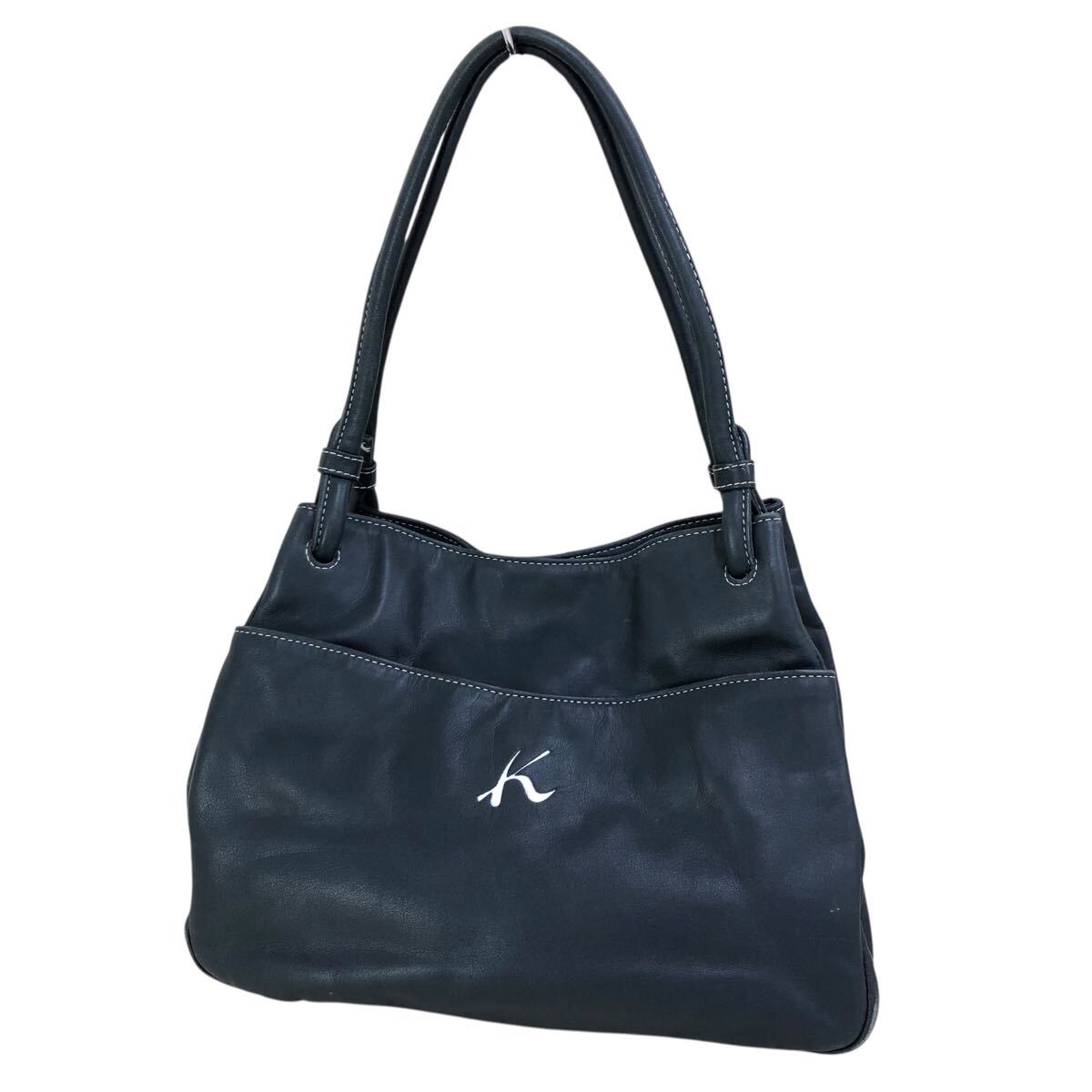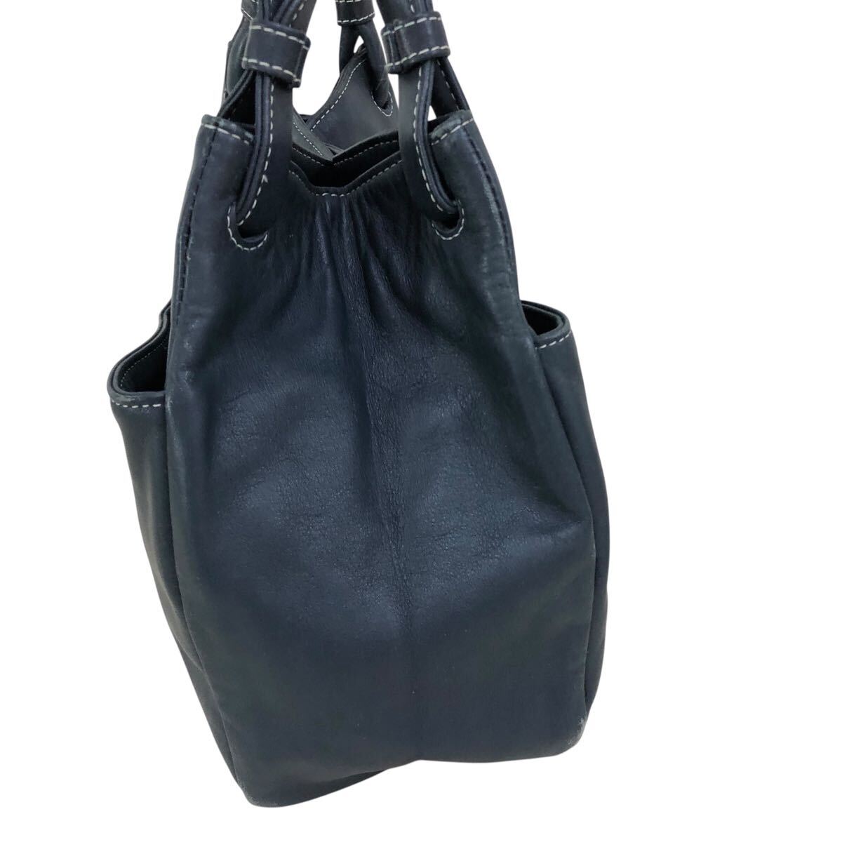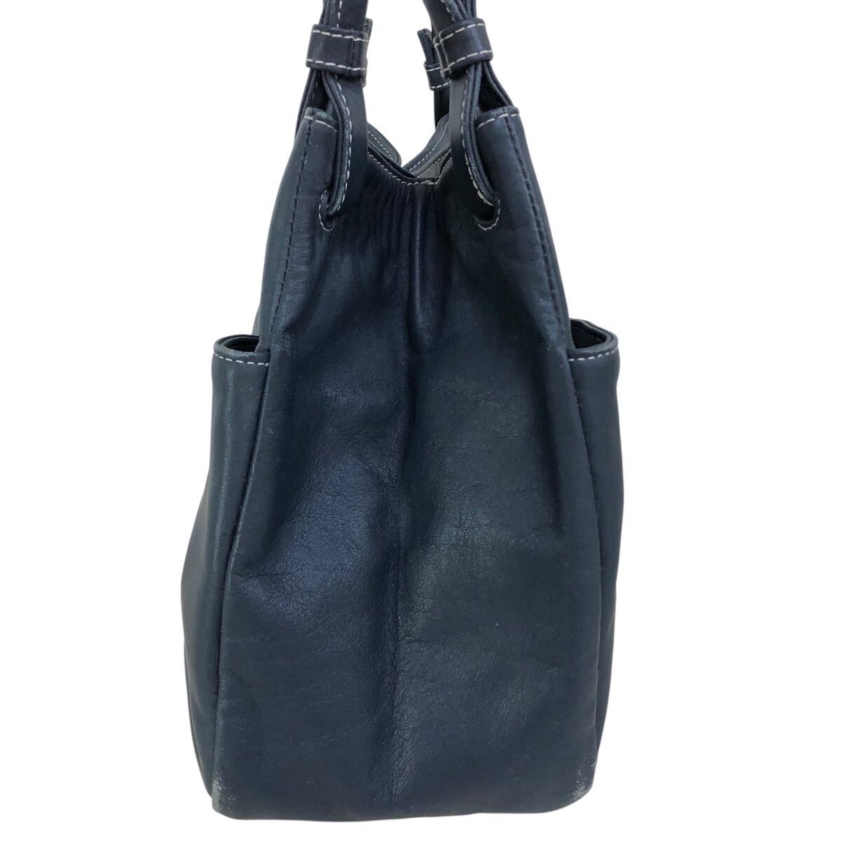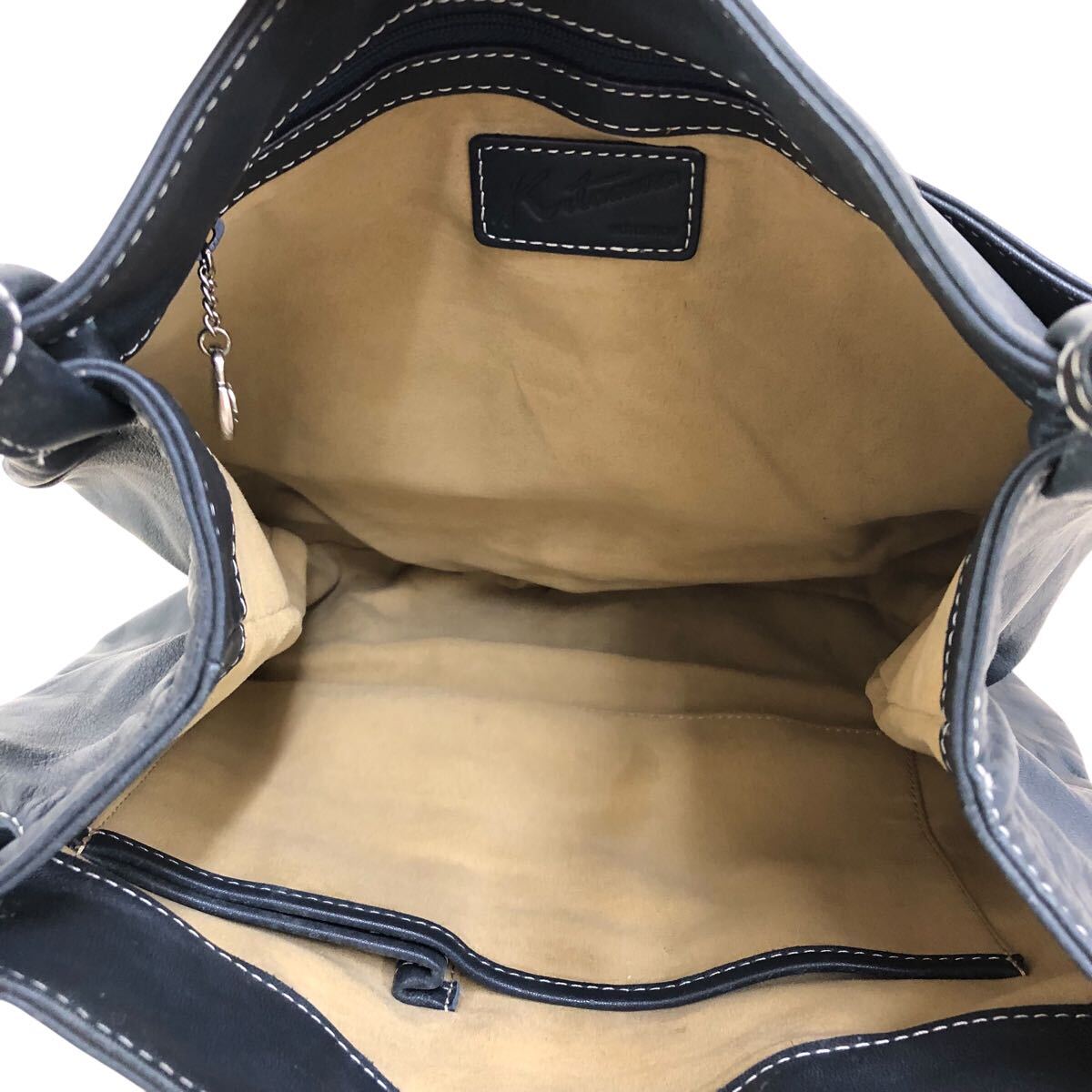 h057-59 本革 Kitamura キタムラ レザー ハンド トート バッグ ネイビー 肩掛け 腕掛け 鞄 カバン bag