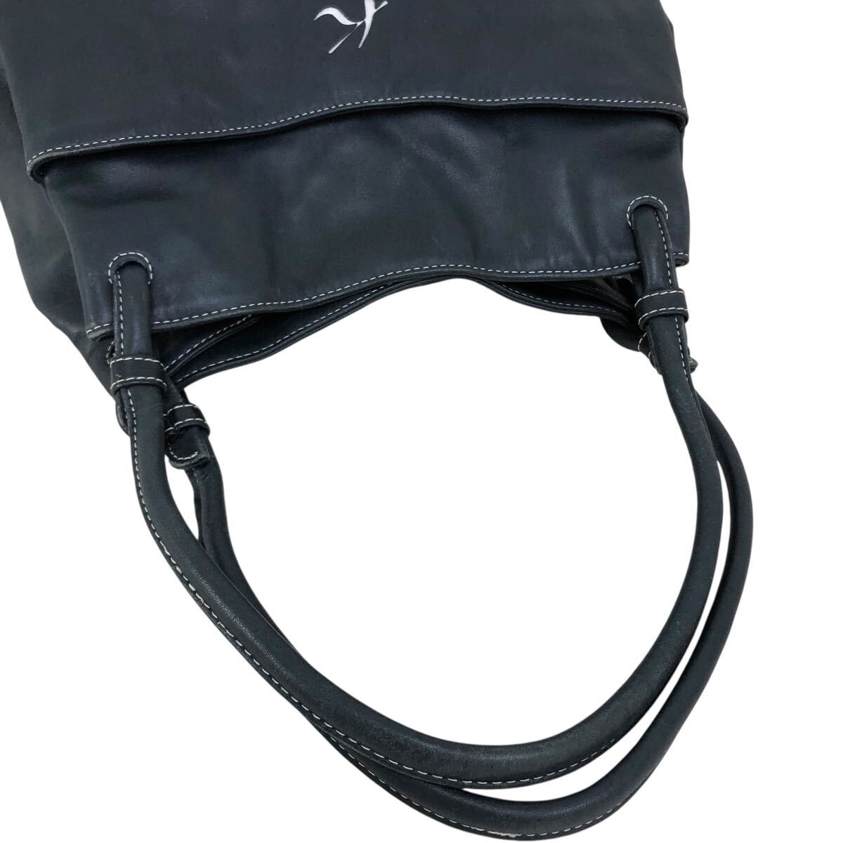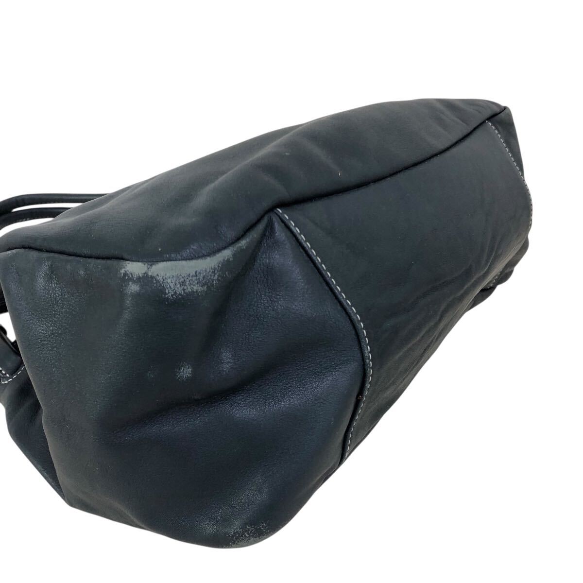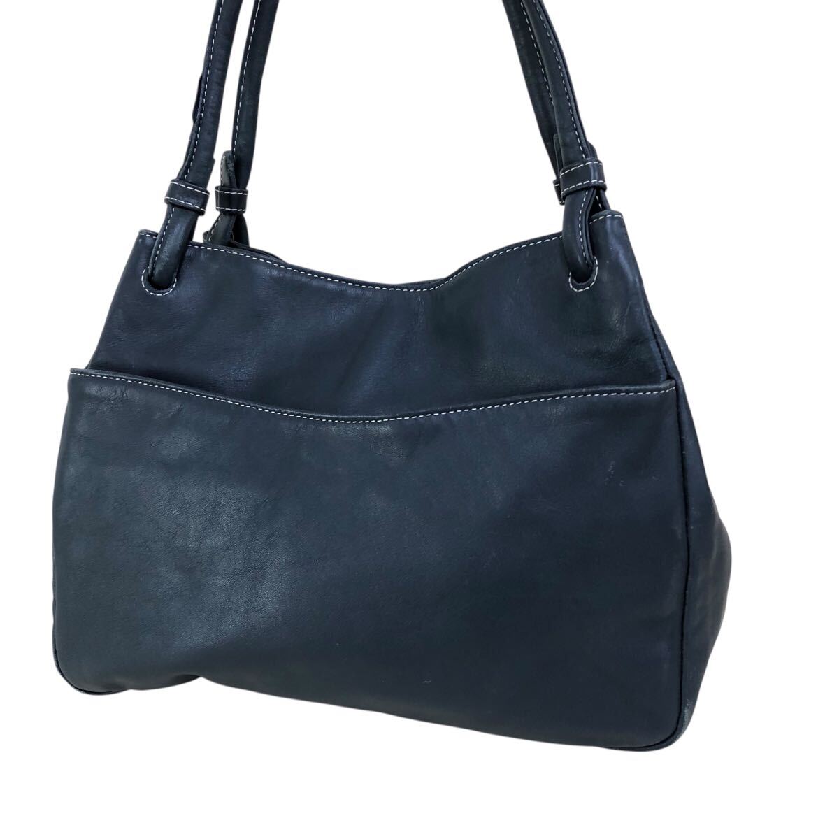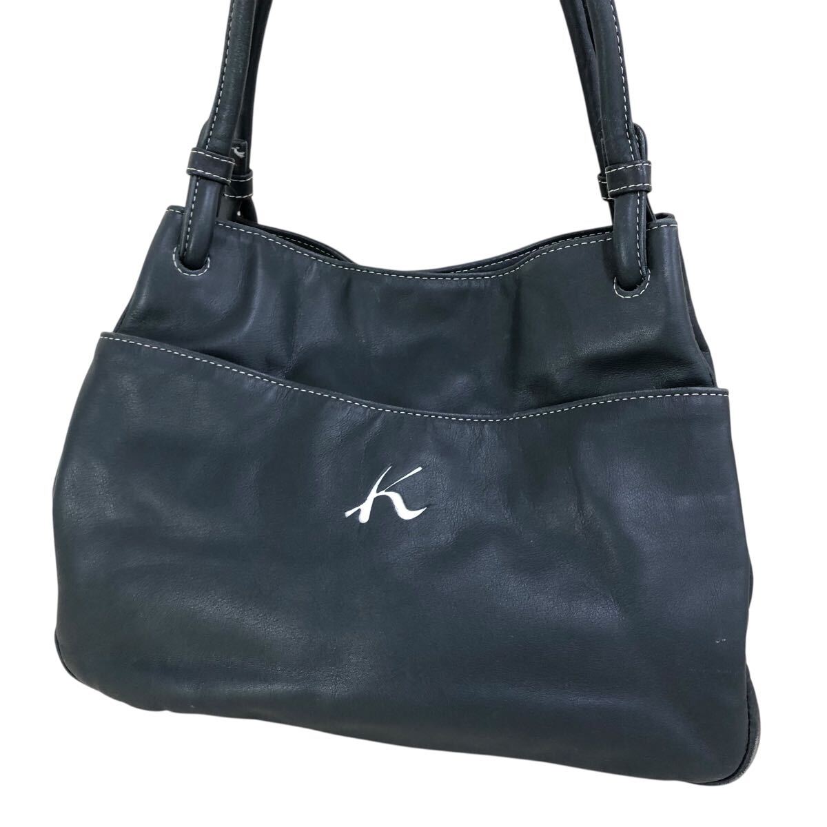 h057-59 本革 Kitamura キタムラ レザー ハンド トート バッグ ネイビー 肩掛け 腕掛け 鞄 カバン bag