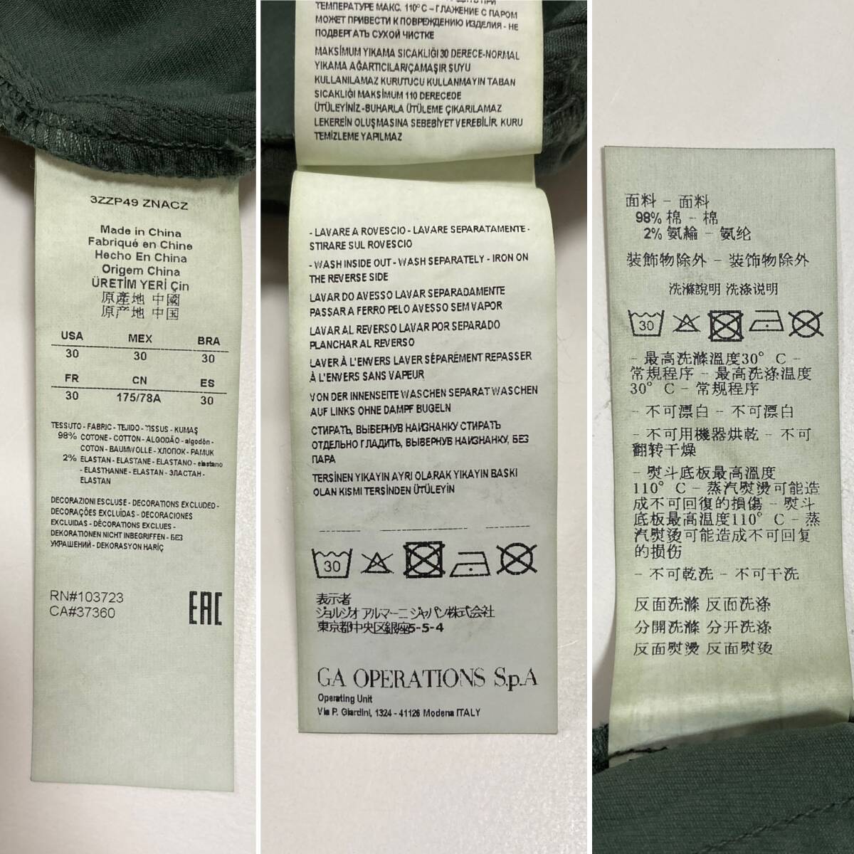 新品未使用品 A/X ARMANI EXCHANGE スキニー カーゴパンツ カーキ メンズ タグ付