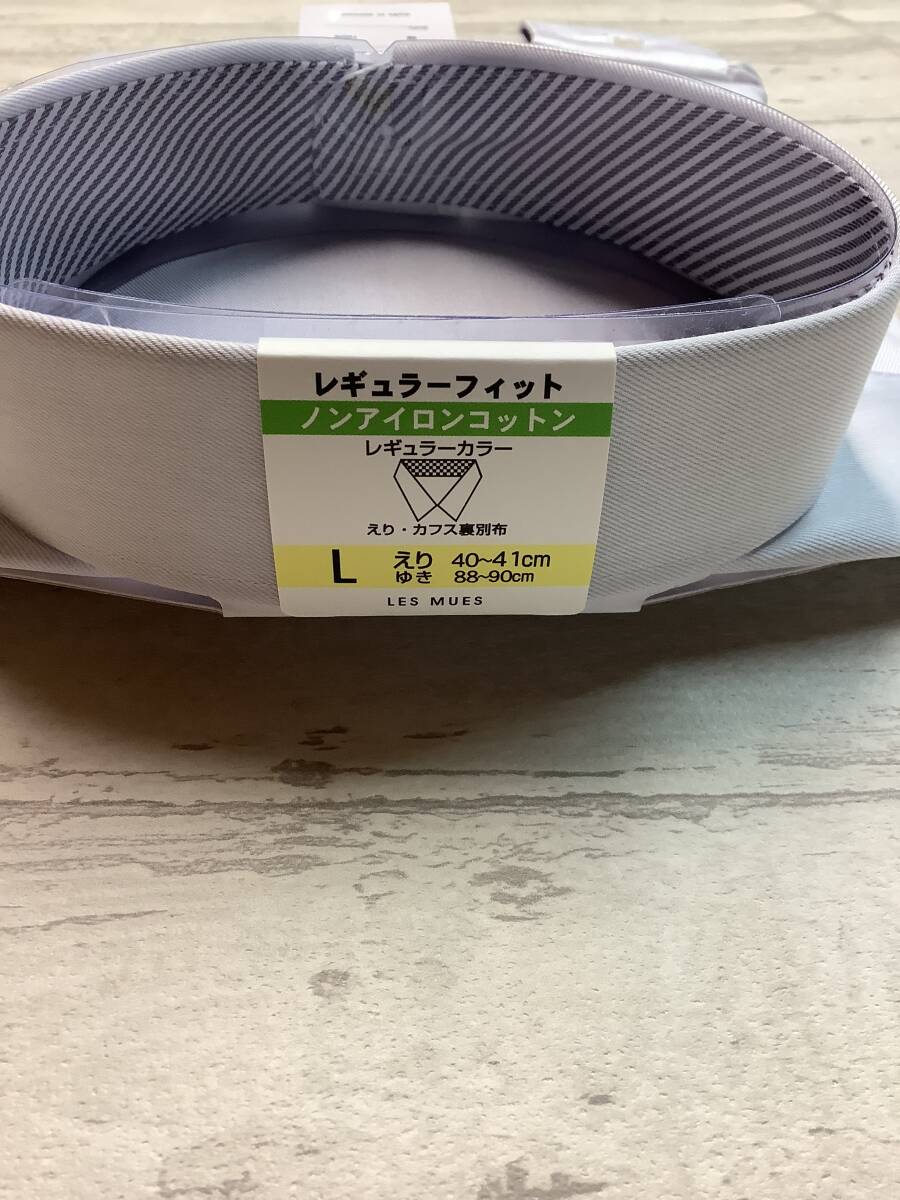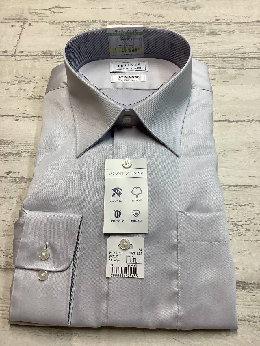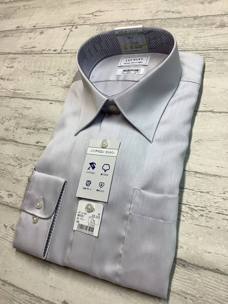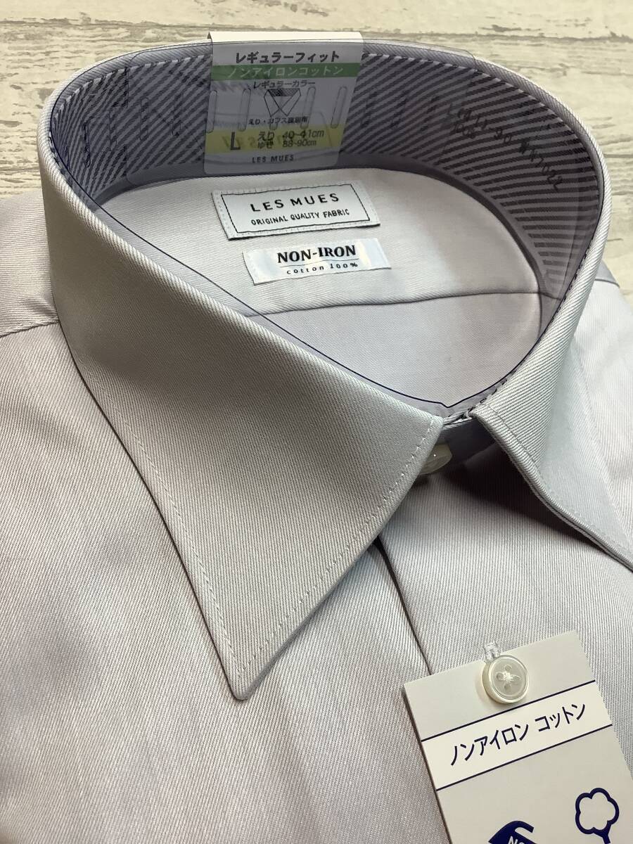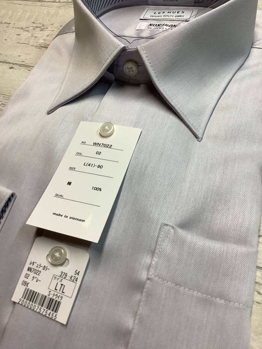新品未使用41-90 長袖Lサイズ  ★綿100% ★レギュラーカラードレスシャツ ノンアイロンコットン グレー