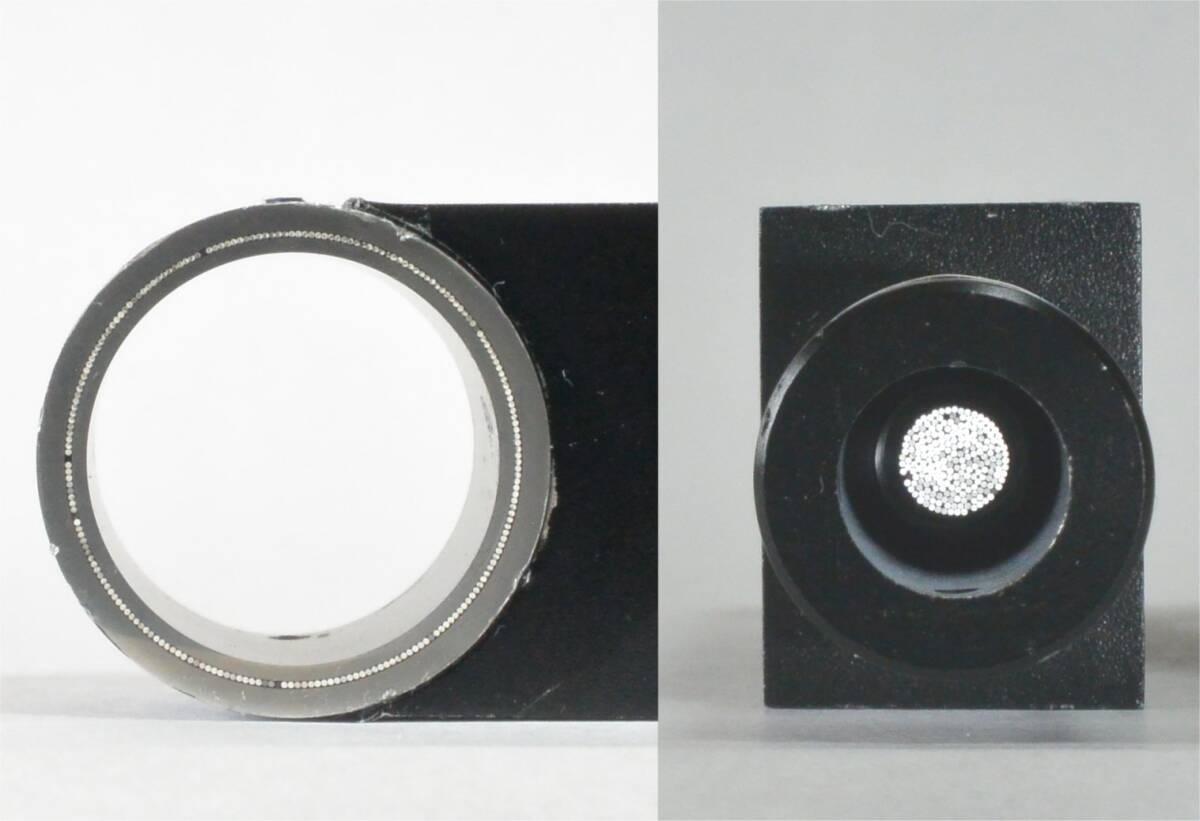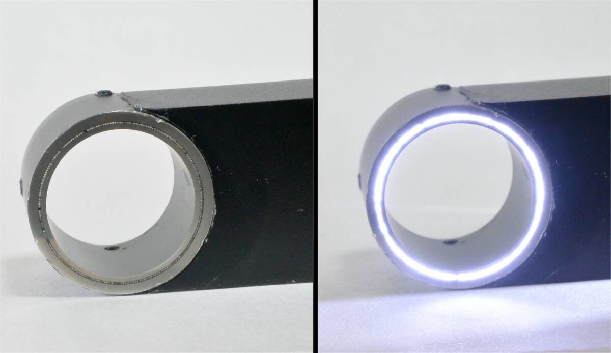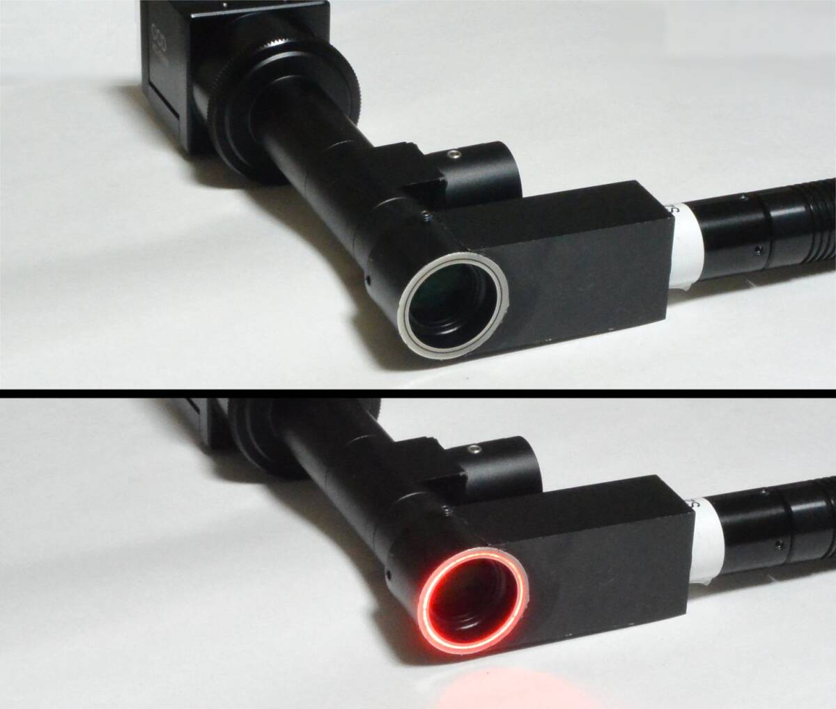 8枚目写真:テレセントリックレンズ(Moritex MML2-ST65D)の先端に取付けて、リング照明しました。(M2止めネジで固定できます。)