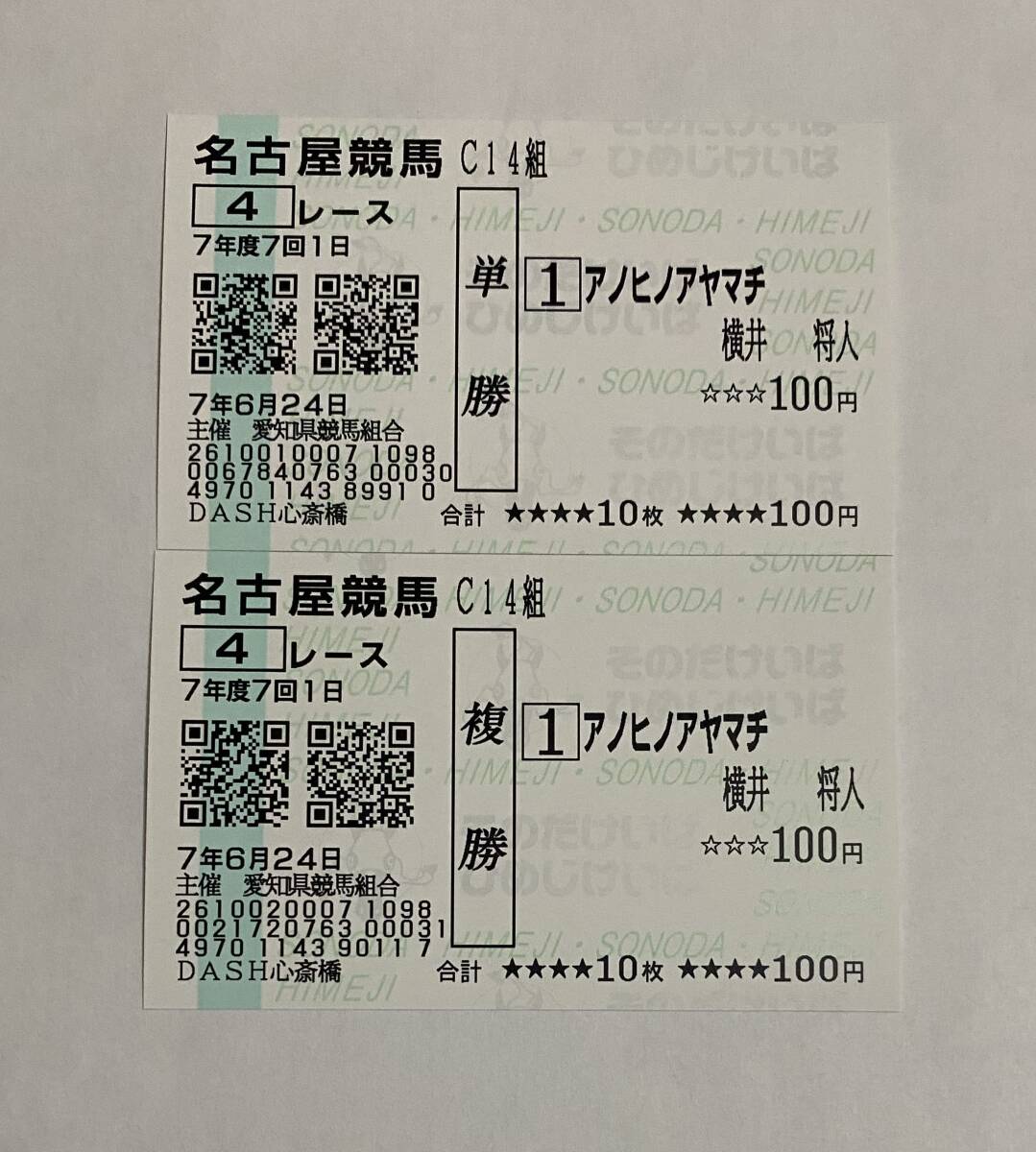 珍名馬券 あの日の過ち アノヒノアヤマチ C14組 単・複2点セット 場外