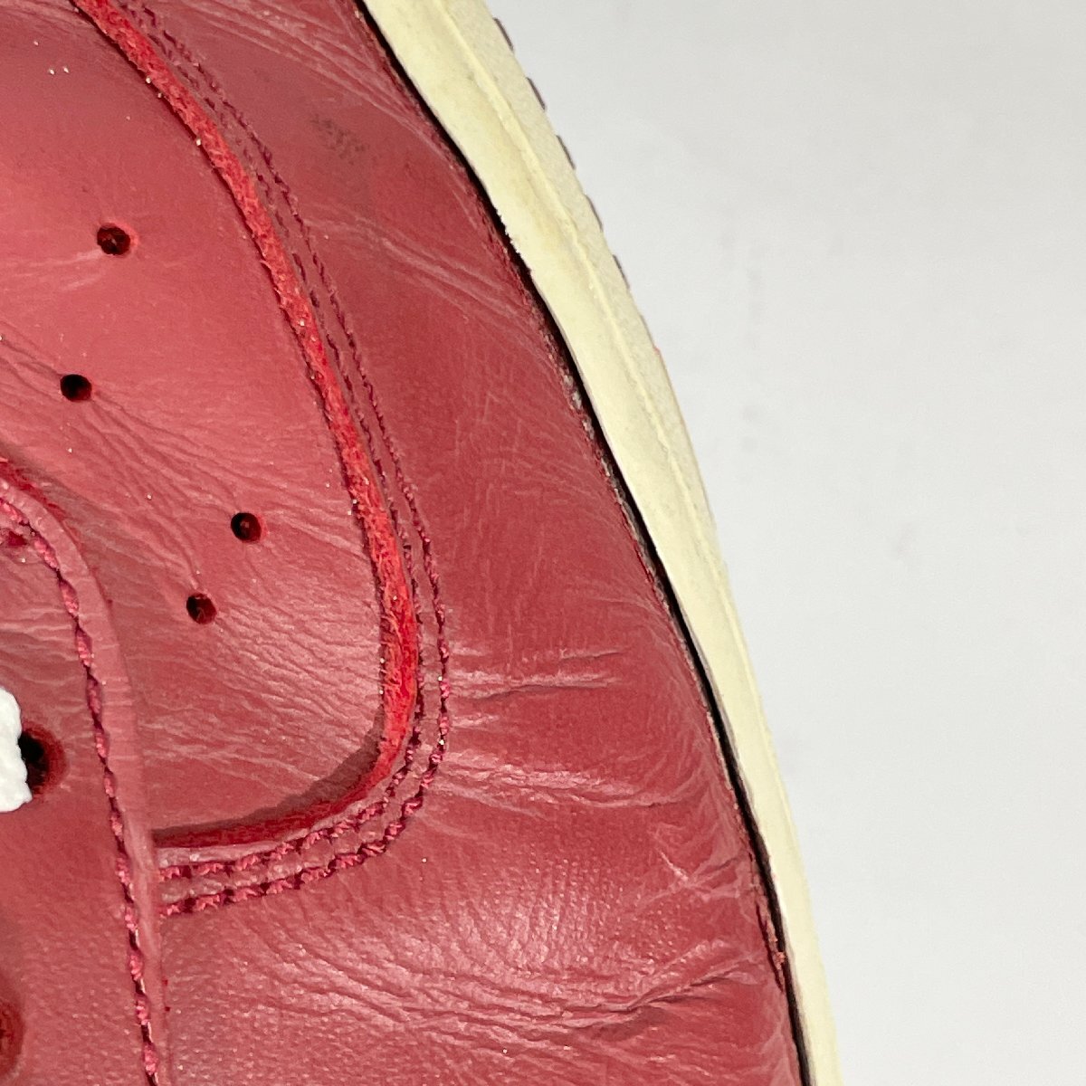 ・ソールの状態:ミッドソールに経年変化、劣化による黄変、変色がございます。ソールは中で加水分解しており使用不可状態です。一部ソールとアッパーの接着に剥がれがございます。ミッドソールにシミ汚れがございます。すり減りがございます。