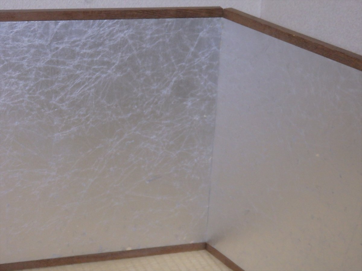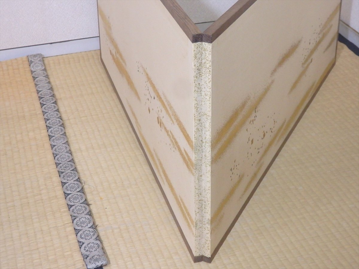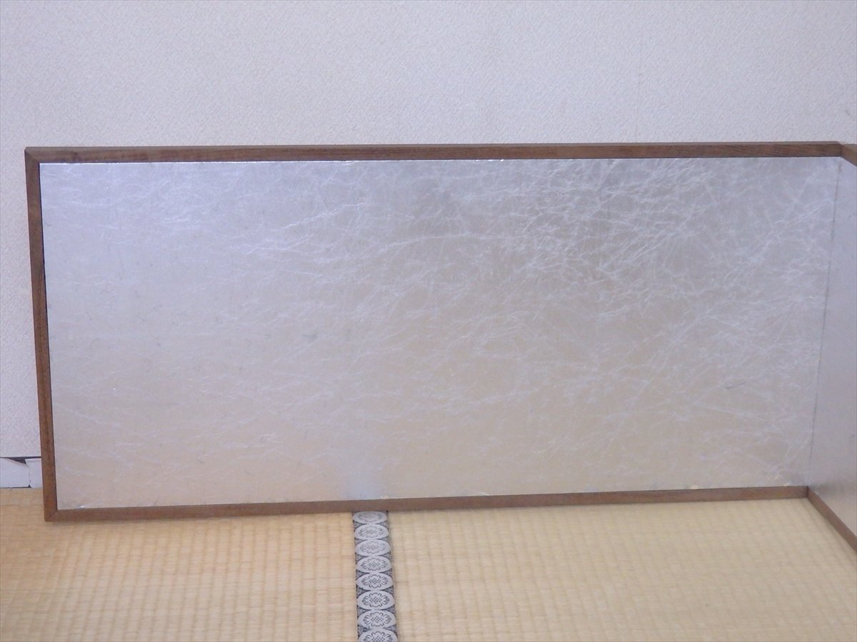 ★銀モミ×金散し【両面 風炉先屏風 桑縁】破れなし セール! 幅93.7cmが2面(二つ折り) 高さ45.5cm 茶道具 家具 茶器