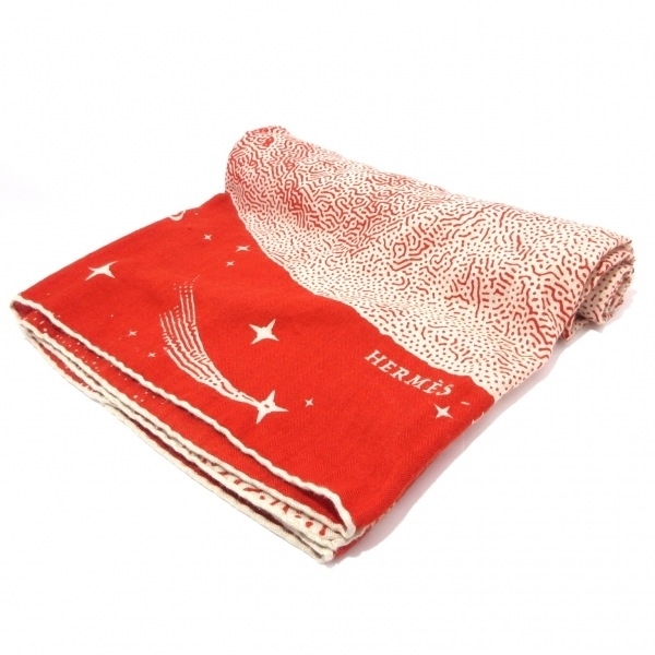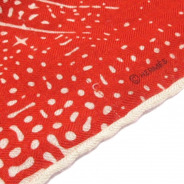 エルメス HERMES ストール(ショール) カレジェアン/ショールカレ140 カシミヤ、シルク レッド×白 CLAIR DE LUNE マフラー