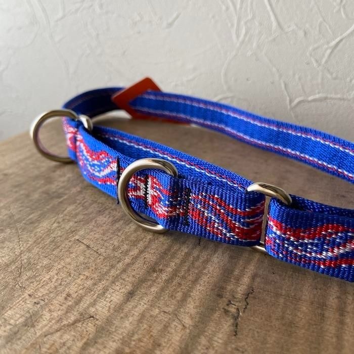 引っ張り防止や訓練の合図を送るのに役立つトレーニング用のハーフチョークカラー、マーチンゲールです。
