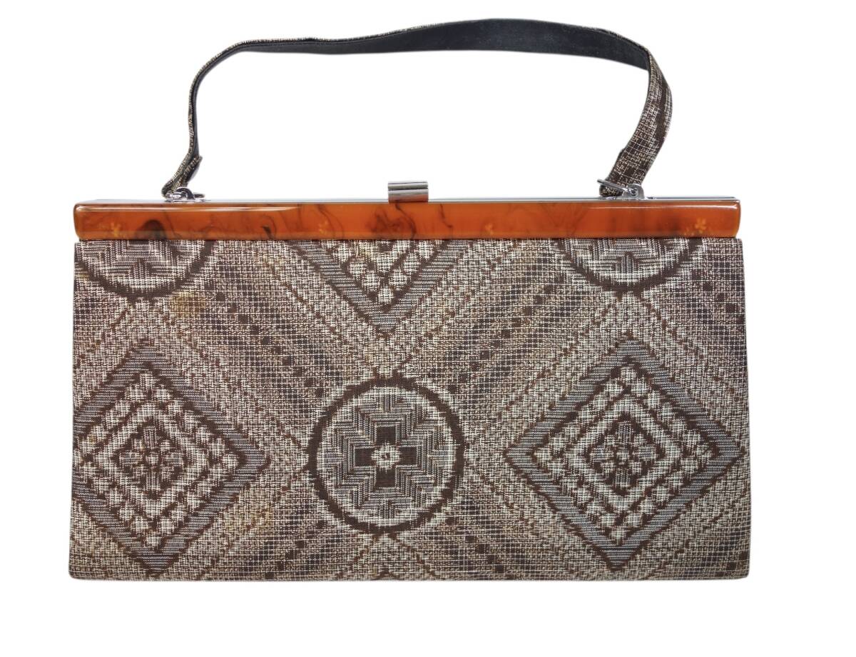 ビンテージ 本場大島紬 こげ茶 龍郷柄 アンサンブル 着物・羽織・和装ハンドバック3点セット 1990年代