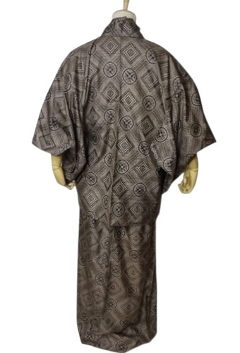 上品な柄の大島紬です。サラリと滑らかな織り上がりで、ブラウンの色がモダンで魅力的な逸品です。