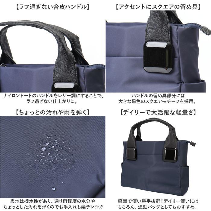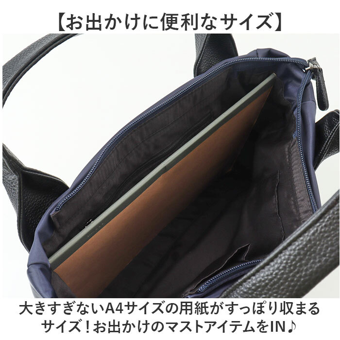 商品説明 | ・・【様々なシーンで使える】 ・普段のお出かけや通勤通学にも使える万能バッグ☆ブラックスクエアナイロントートが発売♪ ・【お出かけに便利なサイズ】 ・大きすぎないA4サイズの用紙がすっぽり収まるサイズ!お出かけのマストアイテムをIN♪ ・【ポーチなどかさばる物もOK】 ・マチ幅を設け、ポーチや手帳など厚みがある小物もしっかり収納ができる。 ・【4つのアウトポケットで整頓】 ・小物が多くなっても安心♪外側に4つのアウトポケットですっきり整頓しながら収納可能。 ・【多ポケットで機能的に使える】 ・内側にも3つのポケット付き。外側のポケットと合わせて7ポケット搭載で機能的に使える♪ ・【ラフ過ぎない合皮ハンドル】 ・ナイロントートのハンドルをレザー調にすることで、ラフ過ぎない仕上がりに。 ・【アクセントにスクエアの留め具】 ・ハンドルの留め具部分には大きな黒色のスクエアモチーフを採用。 ・【ちょっとの汚れや雨を弾く】 ・表地は撥水性があり、通り雨程度の水分やちょっとした汚れを弾くのでお手入れも楽チン☆※ ・【デイリーで大活躍な軽量さ】 ・軽量で使い勝手抜群!デイリー使いにはもちろん、通勤バッグとしてもおすすめ。 ・【ポケット仕様】 ・メインルーム・・・ファスナーポケット×1、オープンポケット×2 ・フロント・・・オープンポケット×1(マグネットボタン付き) ・両サイド・・・オープンポケット×1ずつ ・背面・・・ファスナーポケット×1 ・【注意事項】 ・※完全防水ではございません |