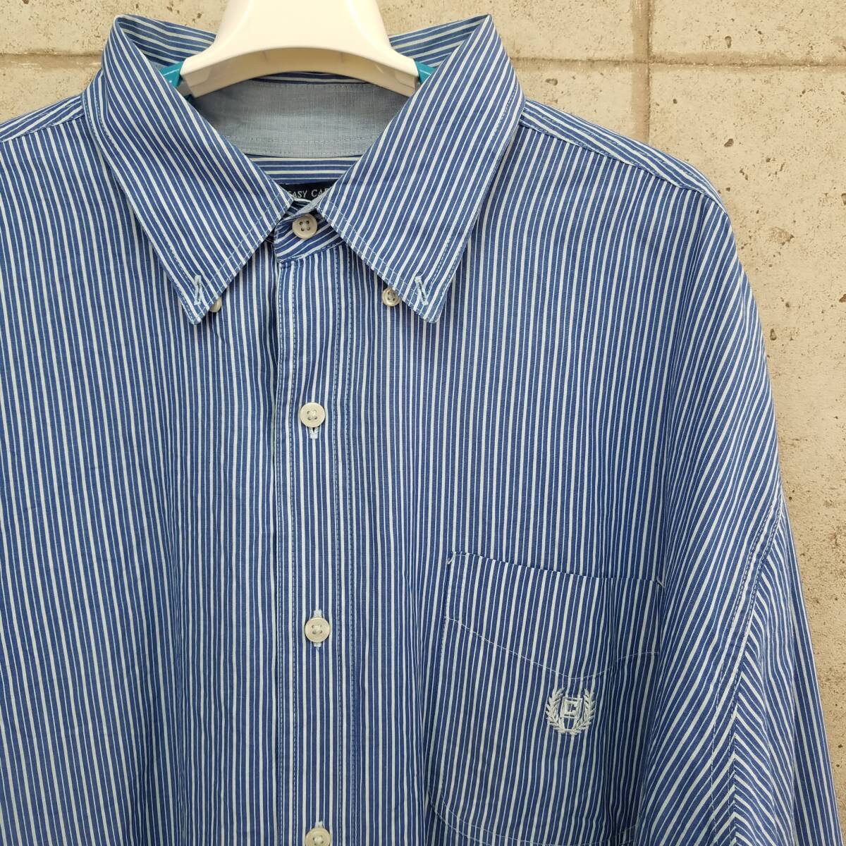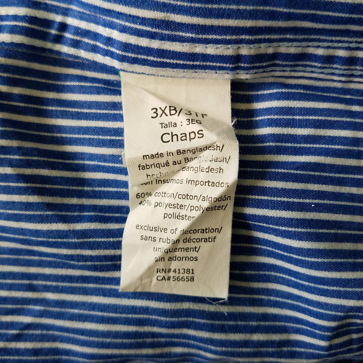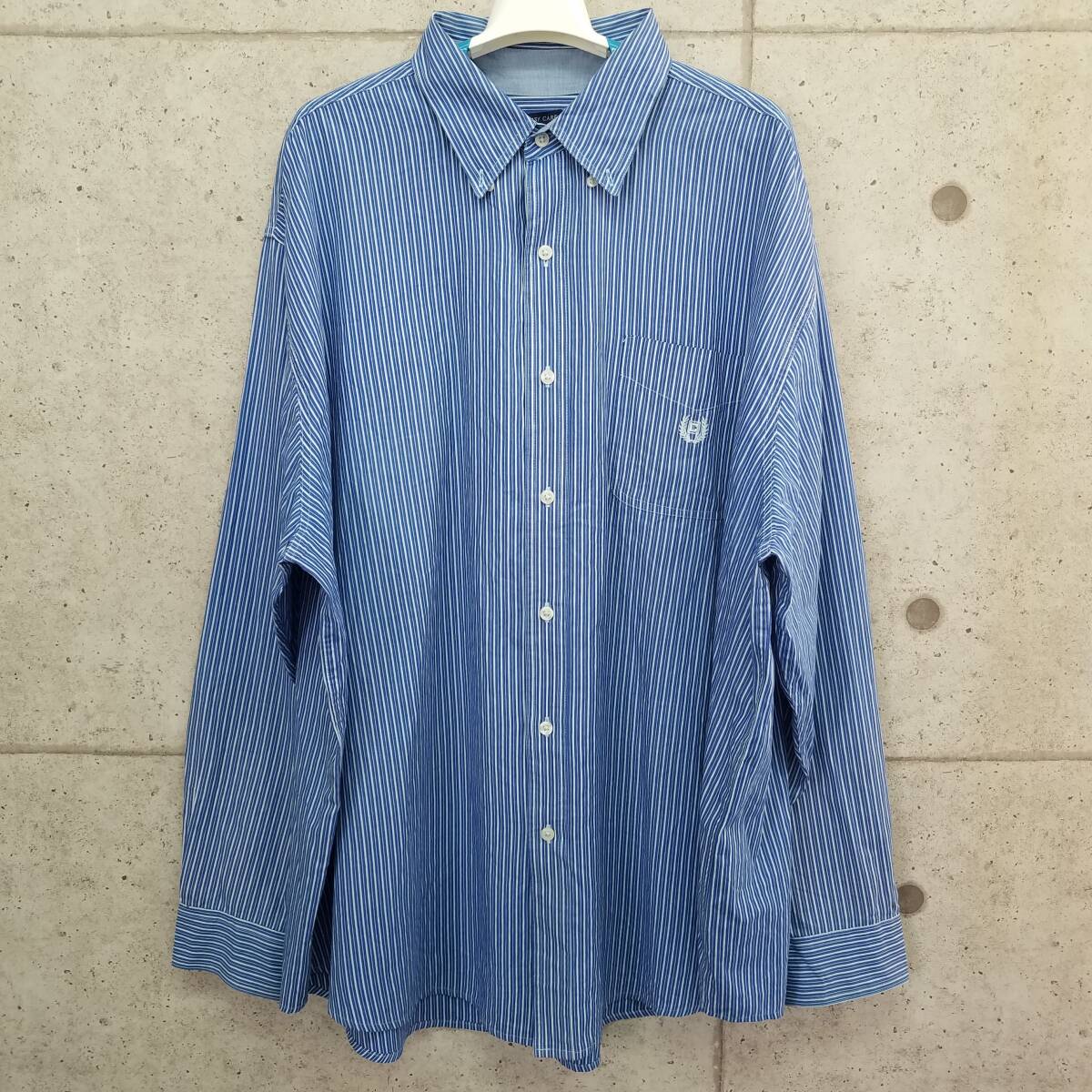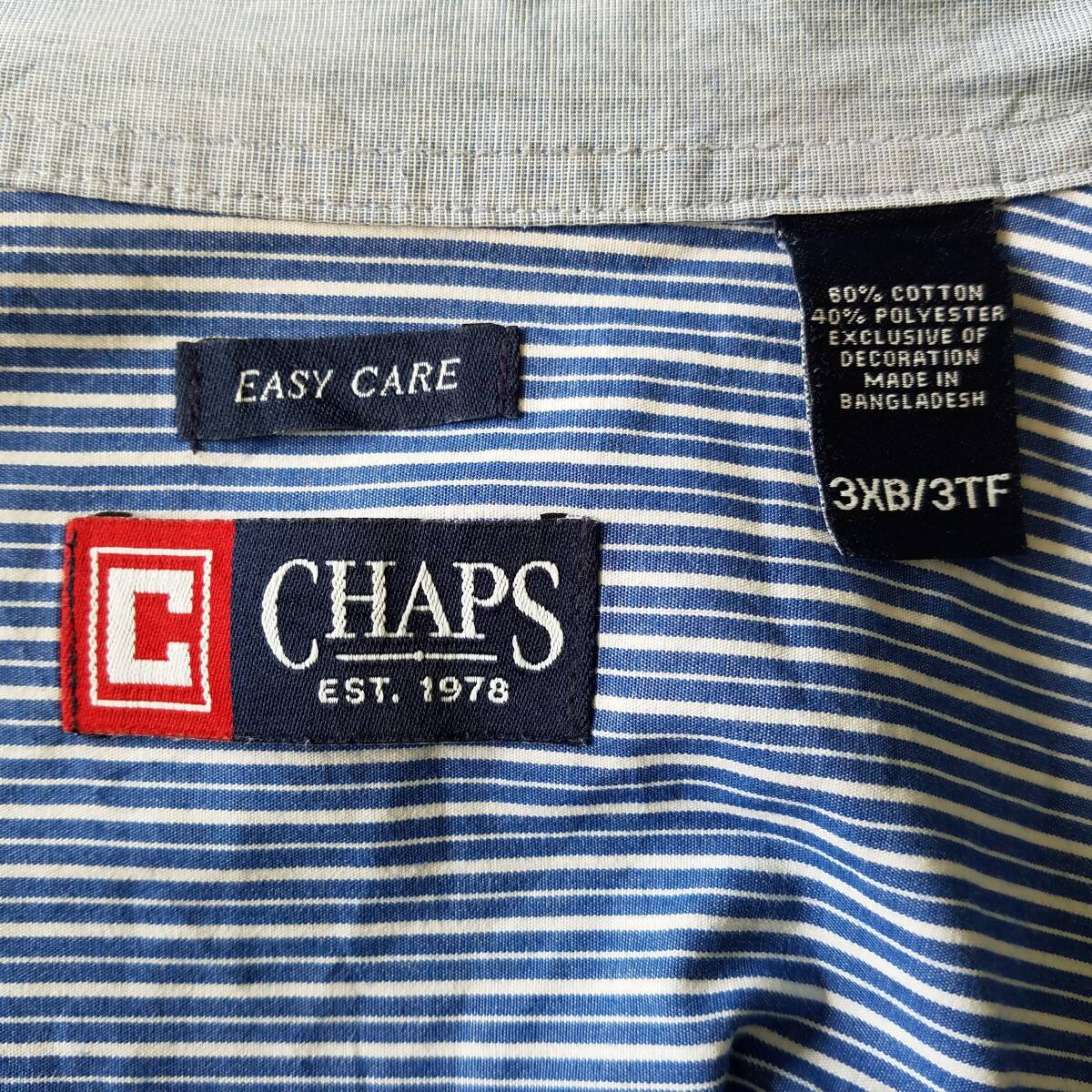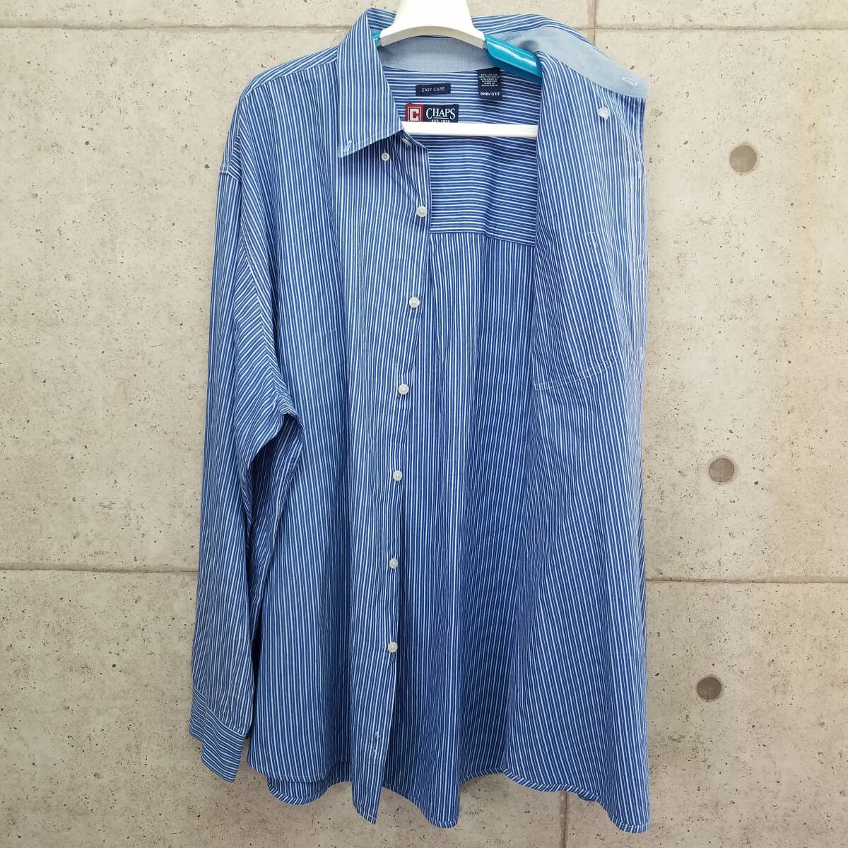 中古 アメリカ古着 CHAPS チャップス 長袖シャツ メンズ 3XLサイズ相当 4L 青 白 ストライプ ビンテージ カジュアル 送料無料