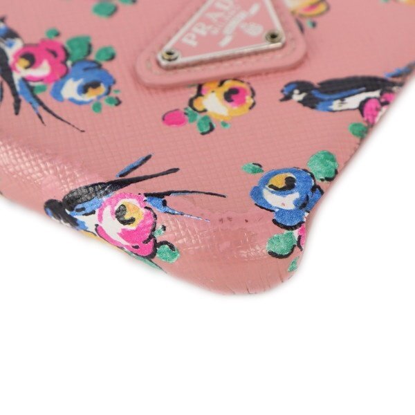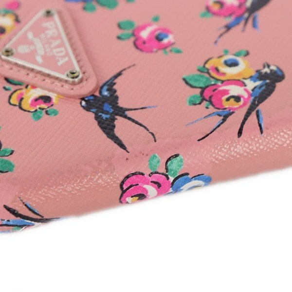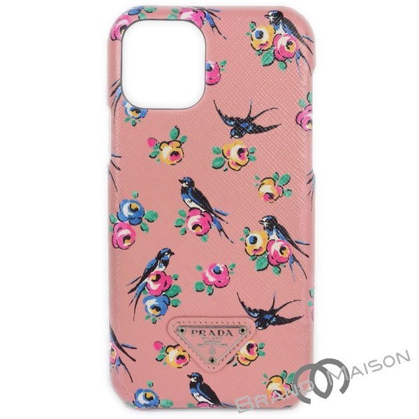 Bランク【プラダ】iPhone12ケース/アイフォンケース/フラワー/スズメ/サフィアーノ/ピンク/PRADA