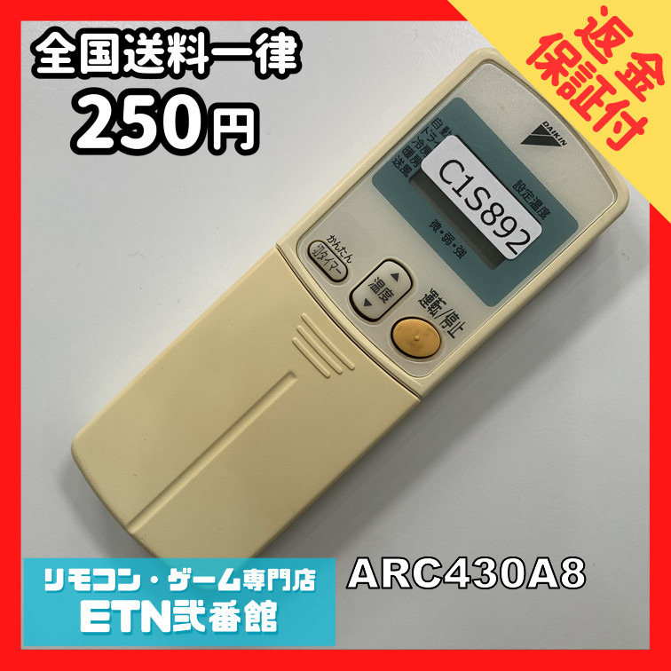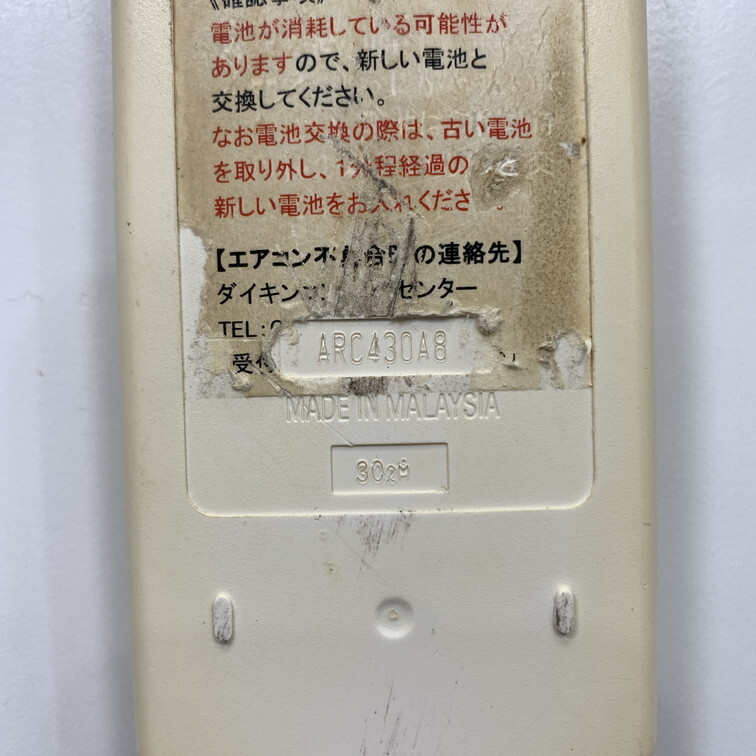 C1S892 【送料250円】エアコン リモコン / Daikin ダイキン ARC430A8 動作確認済み★即発送★ 冷房 暖房