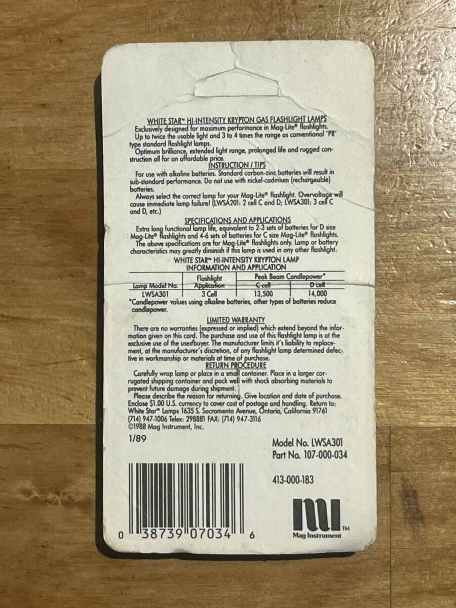 30年程前にアメリカのL.L.Beanから個人輸入でMag-Liteを輸入した際に併せて購入した予備球です。