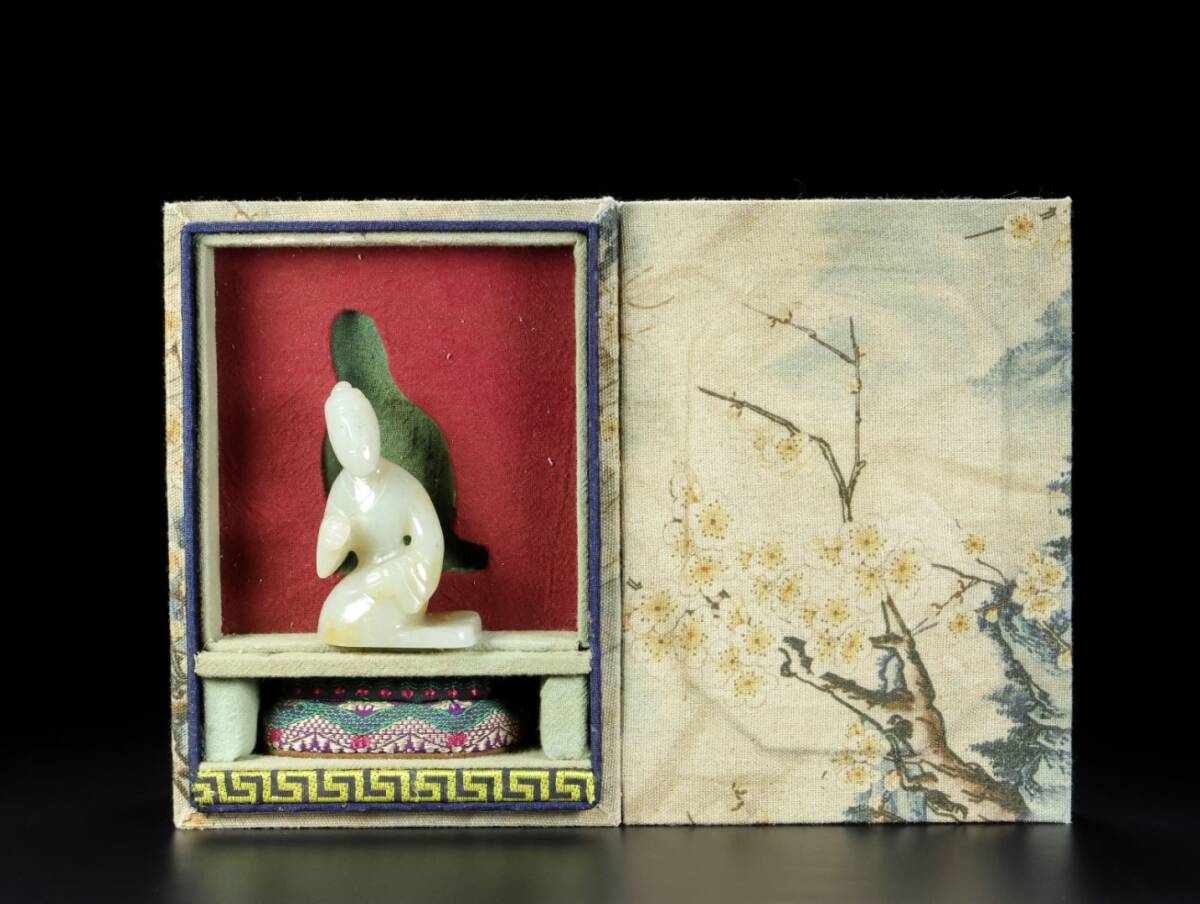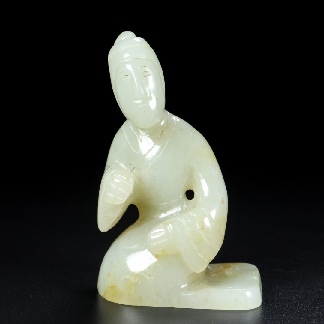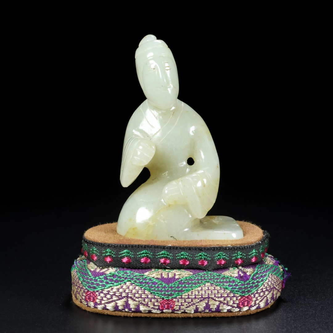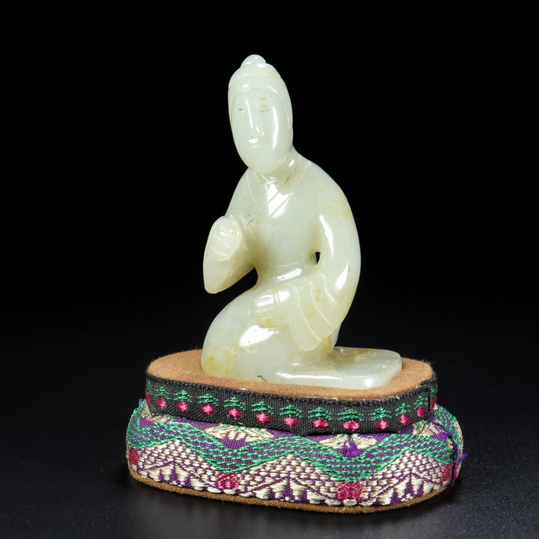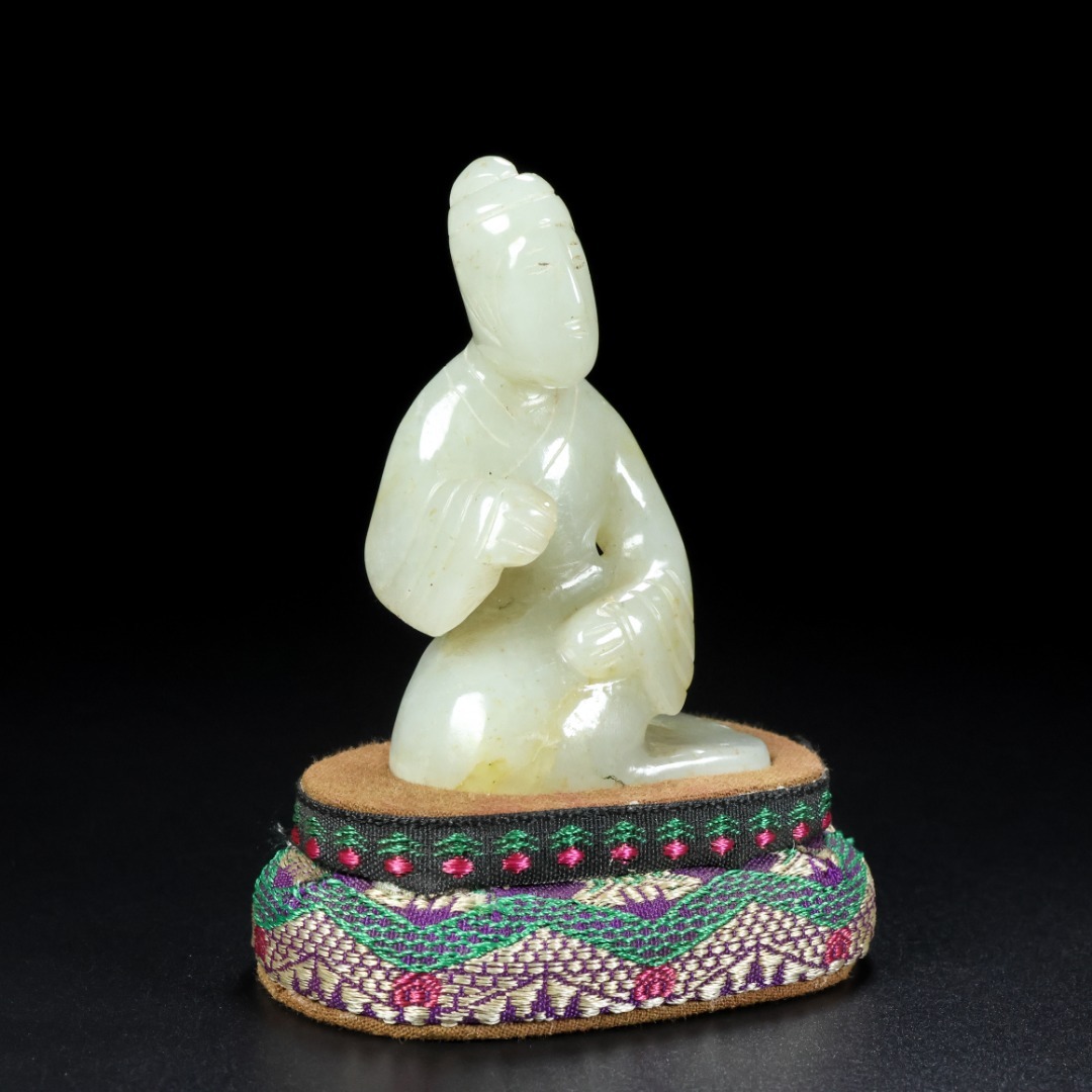 旧蔵 清 玉彫 和田玉 跪人 極細工 中国古玩 骨董品 古美味 207