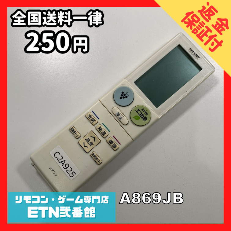C2A925 【送料250円】エアコン リモコン / SHARP シャープ A869JB 動作確認済み★即発送★ 冷房 暖房