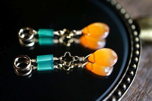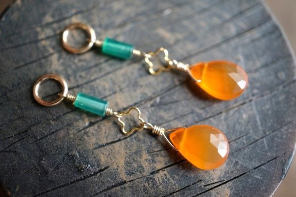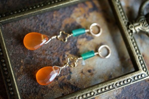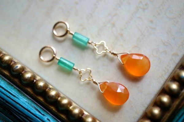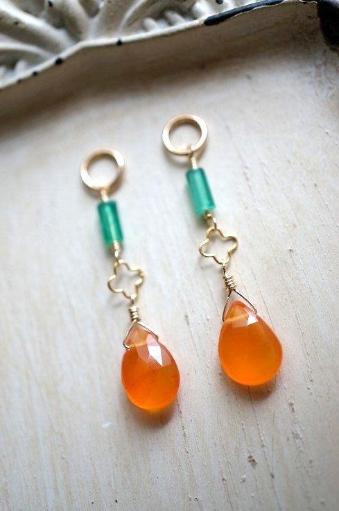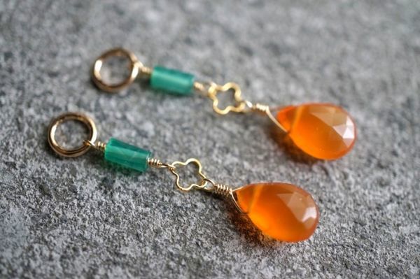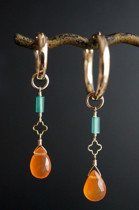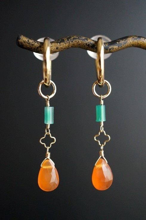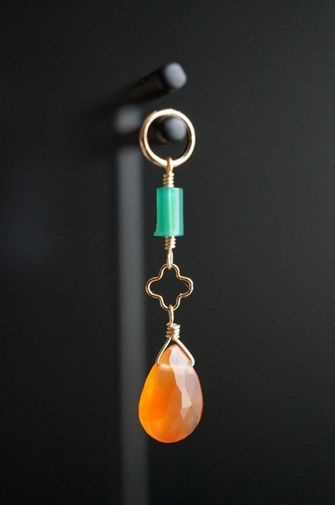【フープ用チャーム】K14GF838 カーネリアン・グリーンオニキス チャーム 1ペア /フープピアス・フープイヤリング・ピアリング ピアスチャ