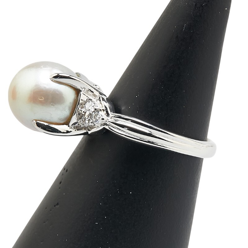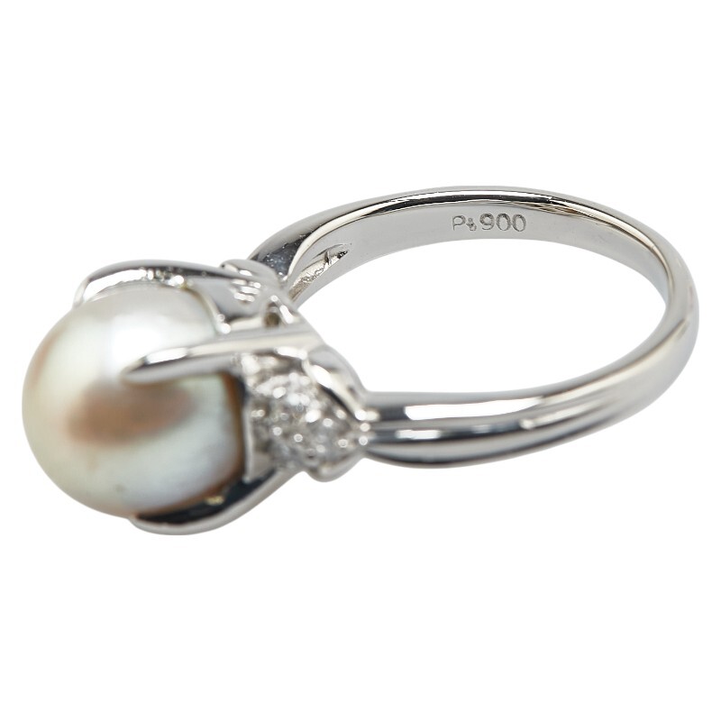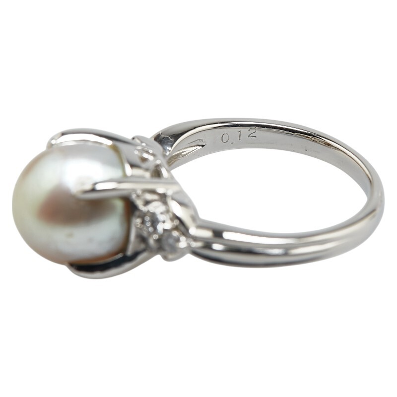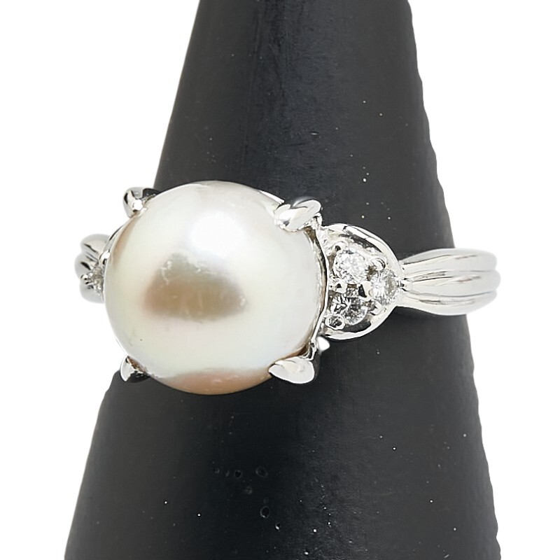 Pt900 プラチナ 白蝶真珠9.7mm ダイヤ0.12ct リング 指輪 レディース 11.5号 中古