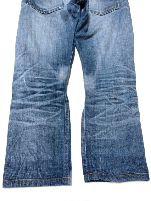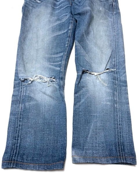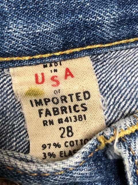 アメリカで縫製された本格派。膝のダメージやヒゲ・アタリなど、味わい深いヴィンテージ加工が魅力です。