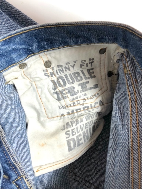 【品 名】   USA製 ストレッチ スキニーデニム (フロントジップ、ダメージ加工、レザーパッチ、