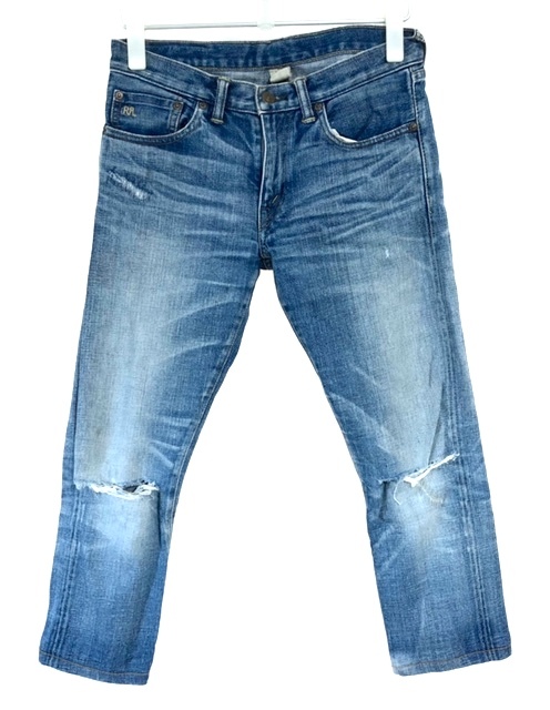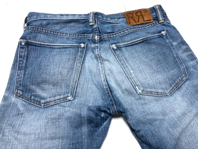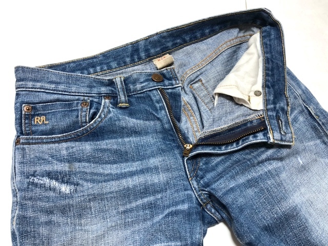 ☆二点落札で送料無料!R980【USA製】RRL ダブルアールエル ストレッチ スキニーデニム 28 レディース ダメージ加工 セルビッジジーンズ