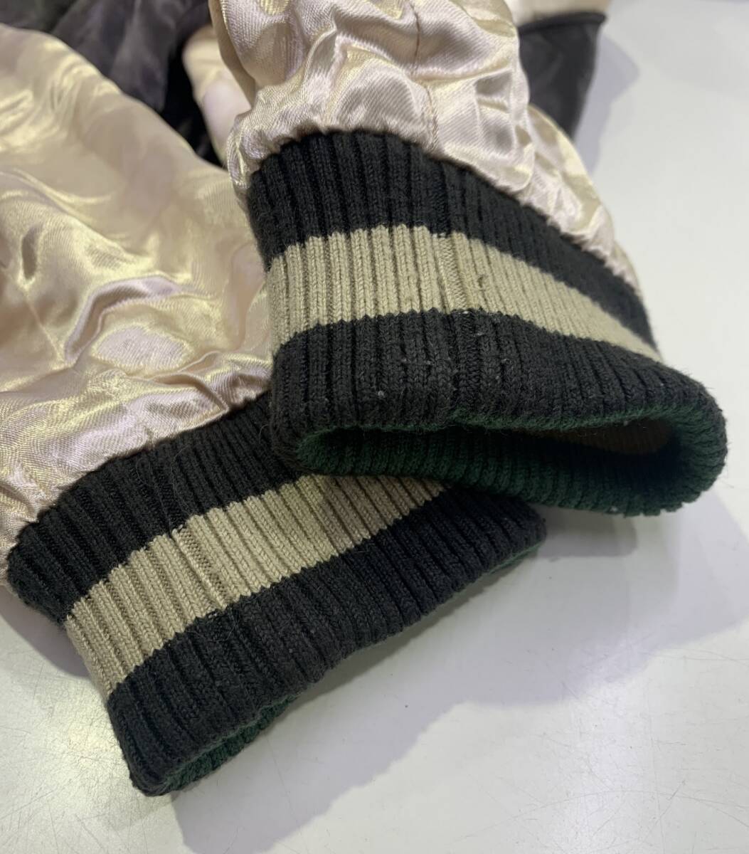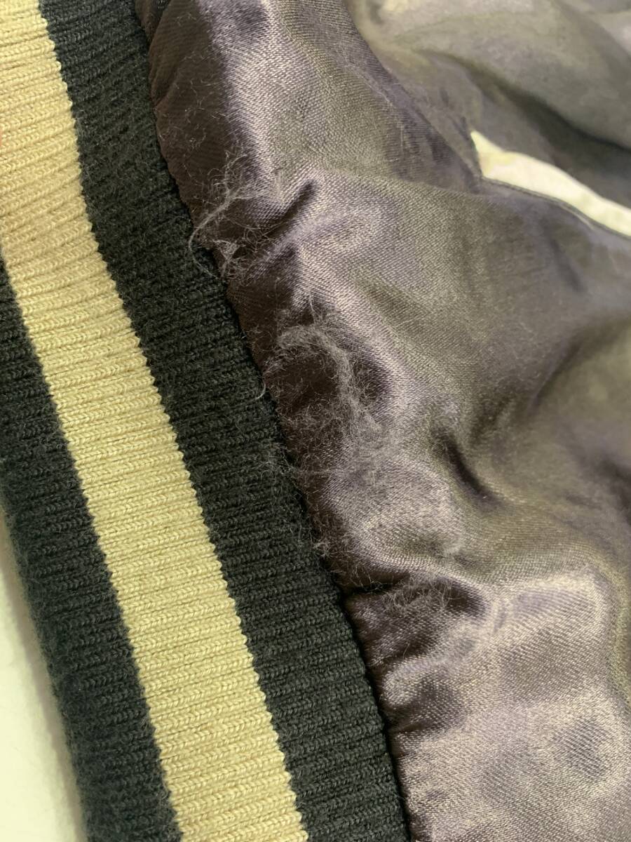 状態:グリーン面:フロントの裾辺りにスレ(写真7枚目)、一部糸の引っかかり跡があります(8枚目)。ブラック面;裾に毛羽立ち(9枚目)、手首に毛玉(10枚目)、一部糸の引っかかり跡があります(8枚目を参考にしてください)。