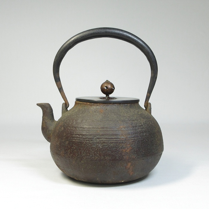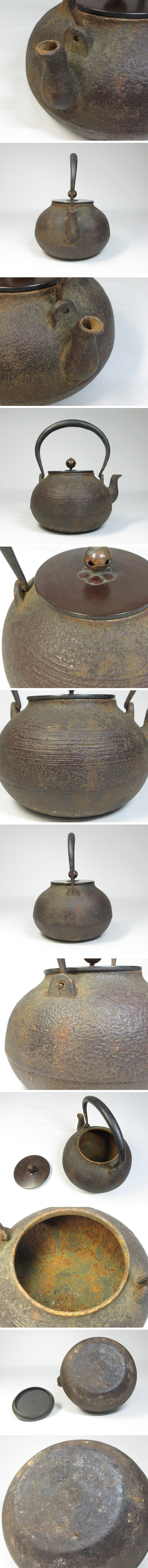 【B0108】煎茶道具 刷毛目 長閑形 鉄瓶 銅蓋 湯沸 鉄壺