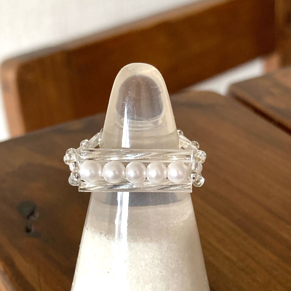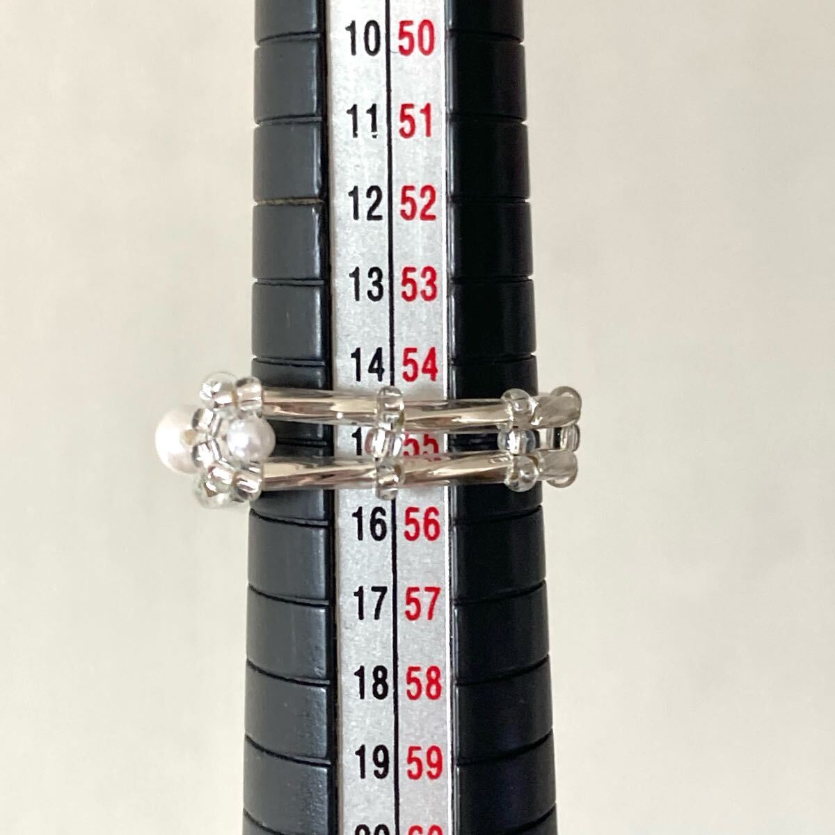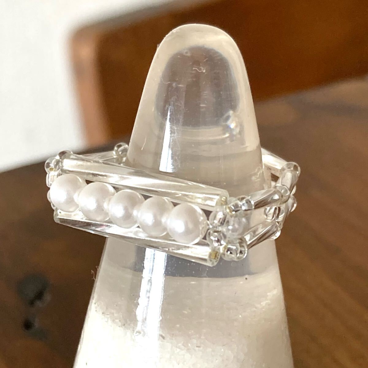 14-16号 ビーズ リング パールとロング竹ビーズのリング 白×シルバー