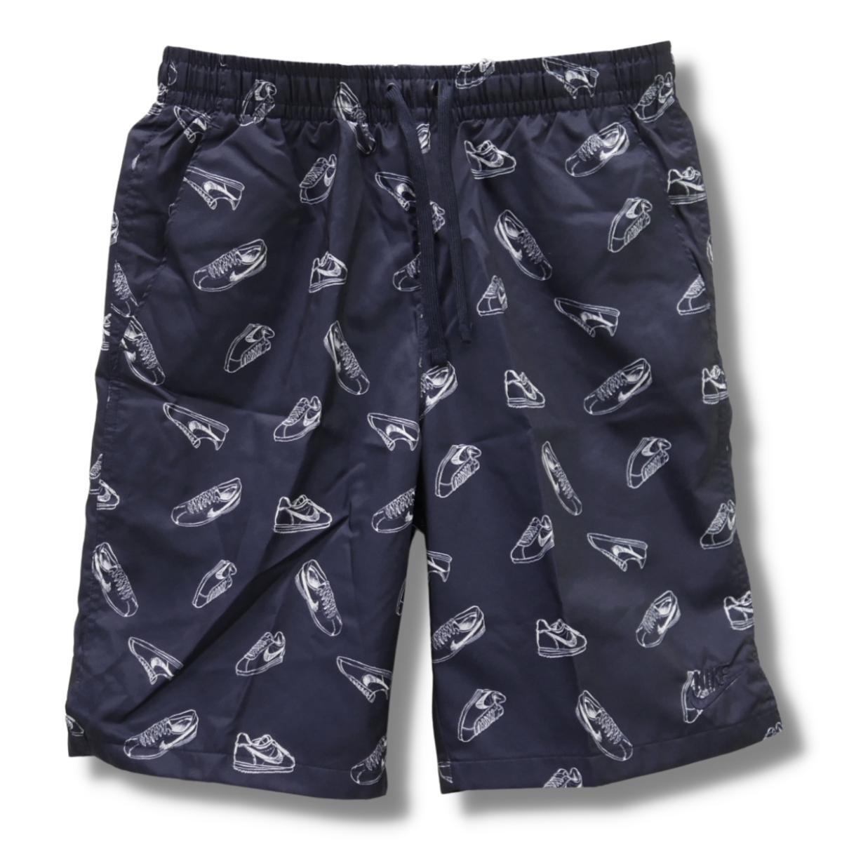 即決☆ナイキ ウインド ショートパンツ NV/Lサイズ L ネコポス スニーカー柄プリント メッシュ裏地 普段使用OK ハーフ 短パン ネイビー 紺