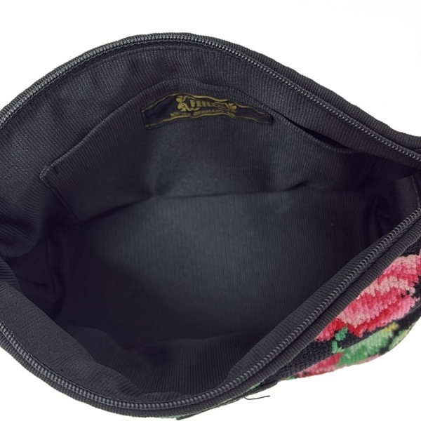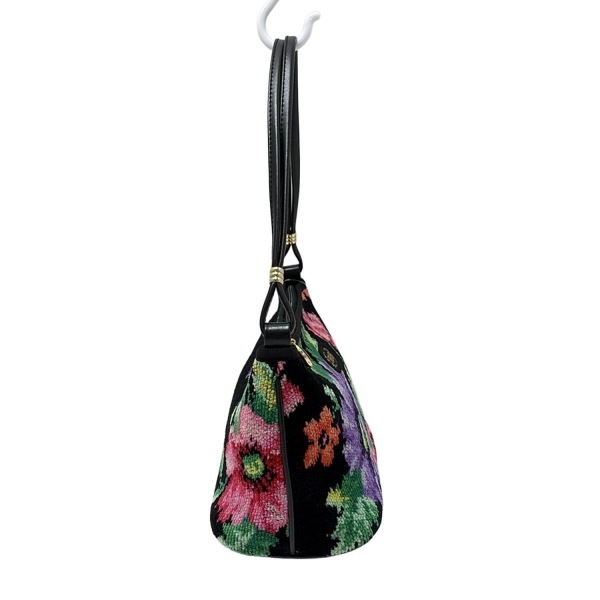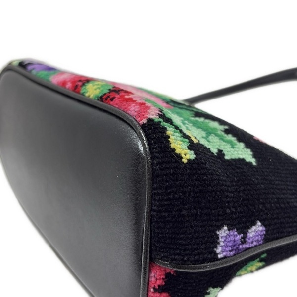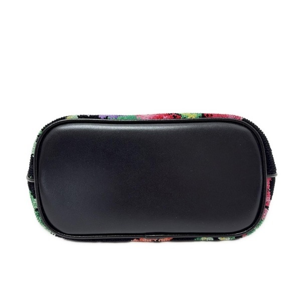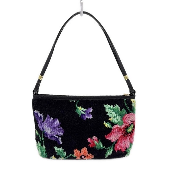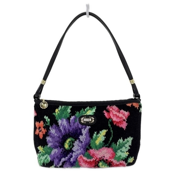 フェイラー FEILER ハンドバッグ - レザー 黒×パープル×マルチ 花柄 美品 バッグ