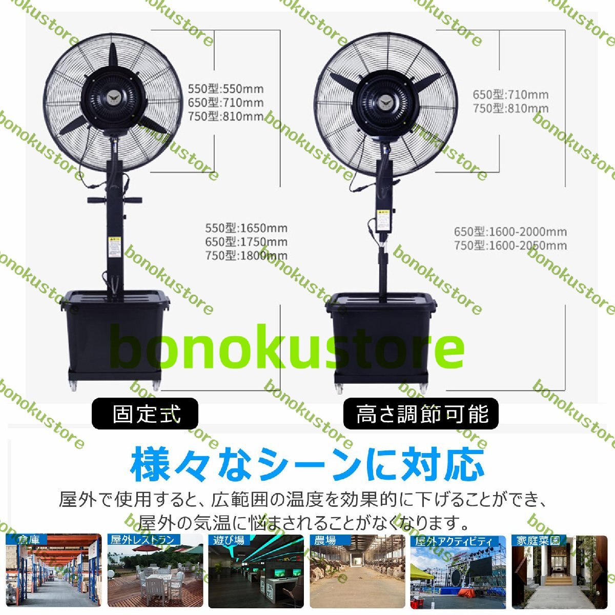 ?産業用スプレーファン|猛暑対策の強力アイテム多シーン対応のクーリングソリューション42L 超大容量タンク搭載で、工場・機械室の高熱環境、庭園・テラスのくつろぎ空間まで、持続噴霧と 550mm 大口径ファンで迅速降温。真夏の猛暑を一気に解消する「屋外・産業両対応クーラー」!?3 段階風速 × 科学風路で全需求カバー1 段階(弱風):日常くつろぎに最適な柔らかい風2 段階(中風):仕事・勉強に集中できる清涼環境を演出3 段階(強風):工場「炎暑空間」を瞬時に改善アイスサイクロンエアシステムが風路最適化!風の到達距離が広く、遠・近距離問わず力強く涼風を届ける。?分離式タンク × 移動キャスターで使い勝手 MAX42L 分離式タンクは給水・清掃が簡単。持続噴霧で頻繁な給水不要!底部移動キャスター搭載で、工場エリア移動やテラス位置変更もスムーズ。屋外使用の利便性を最大限引き出す。?完全密閉型モーター|静音 × 耐久性両立完全密閉構造で防塵・防水・静音を実現!複雑な産業環境でも水滴・ほこりを防ぎ、低ノイズで長寿命。安定したクーリングを提供し、メンテナンス手間を大幅削減。?多サイズ × 多機能でコスパ最強ファンブレードサイズ:550mm/650mm/750mm(一部高さ調節対応)「ファン + 噴霧 + 加湿」3 機能集約!工場降温から家庭リラックスまで、省スペースかつコスト効率の高いソリューションを実現。?まとめ猛暑対策にも使い勝手にも、耐久性にもこだわった産業用スプレーファン。「多シーン活躍 × 高機能集約 × 長寿命設計」で、あらゆる暑さの困りごとを解決!?? 今すぐ導入で、夏のクーリング環境を一気にアップグレード!
