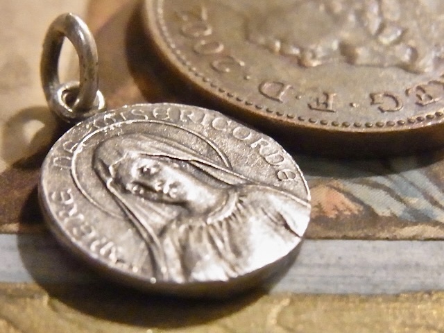フランス アンティーク 小さな メダイ 聖母マリア イエズスの聖心 慈悲の母 PENIN ペナン