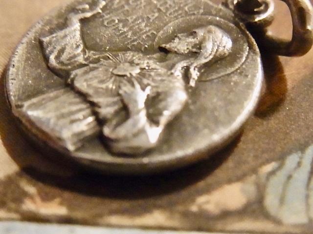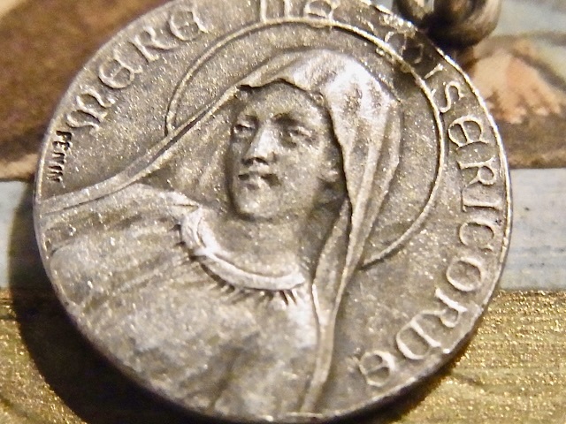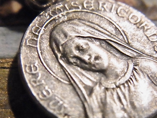 表には聖母マリア、裏側にはイエズスの精神がかたどられた小さなメダイです。