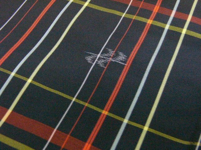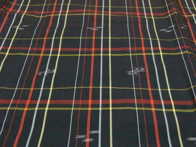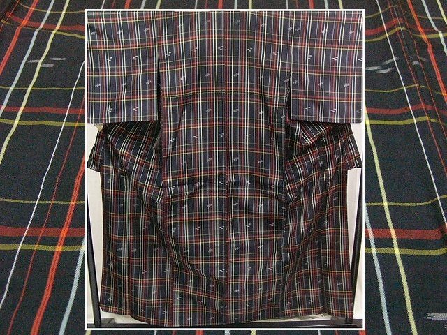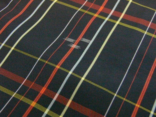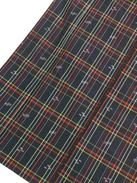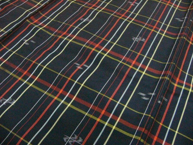 黒色地に格子模様の紬で間に小さな柄が折り込んであります。