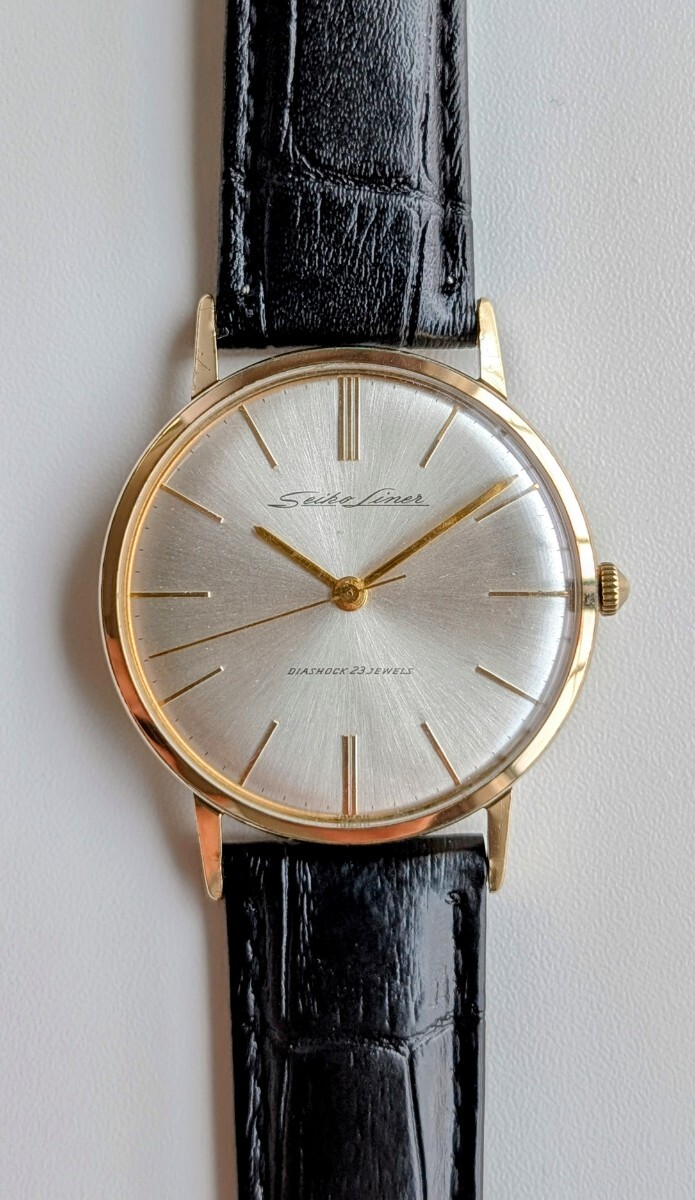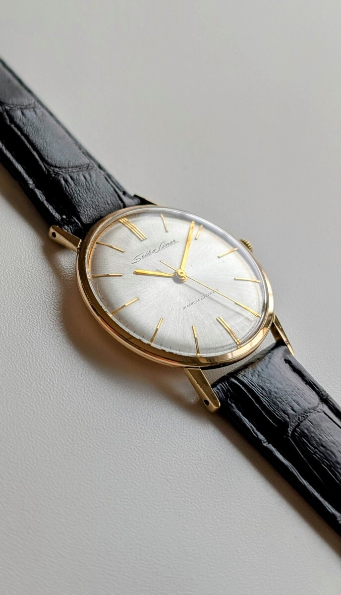 当時、腕時計は大型化に続き、薄型が流行しました。1960年に羽のように軽くて薄い時計「ゴールドフェザー」が第二精工舎亀戸工場で生産されましたが、半年後に【ライナー】が諏訪精工舎で製造されました。