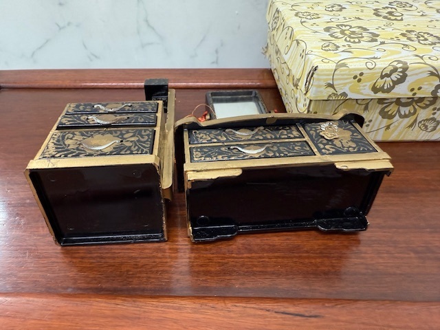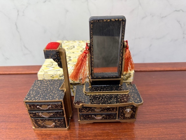 古い雛道具 ひな道具 金蒔絵 中型対鏡 針箱 鏡台 雛飾り