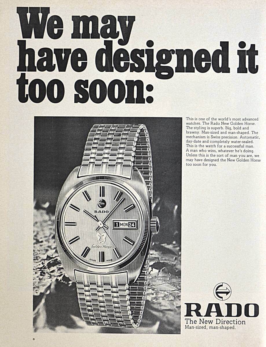 稀少・時計広告!1969年ラドー 時計広告/Rado New Golden Horse/Watch/Swiss/宇宙/W