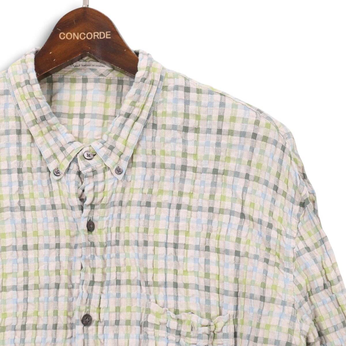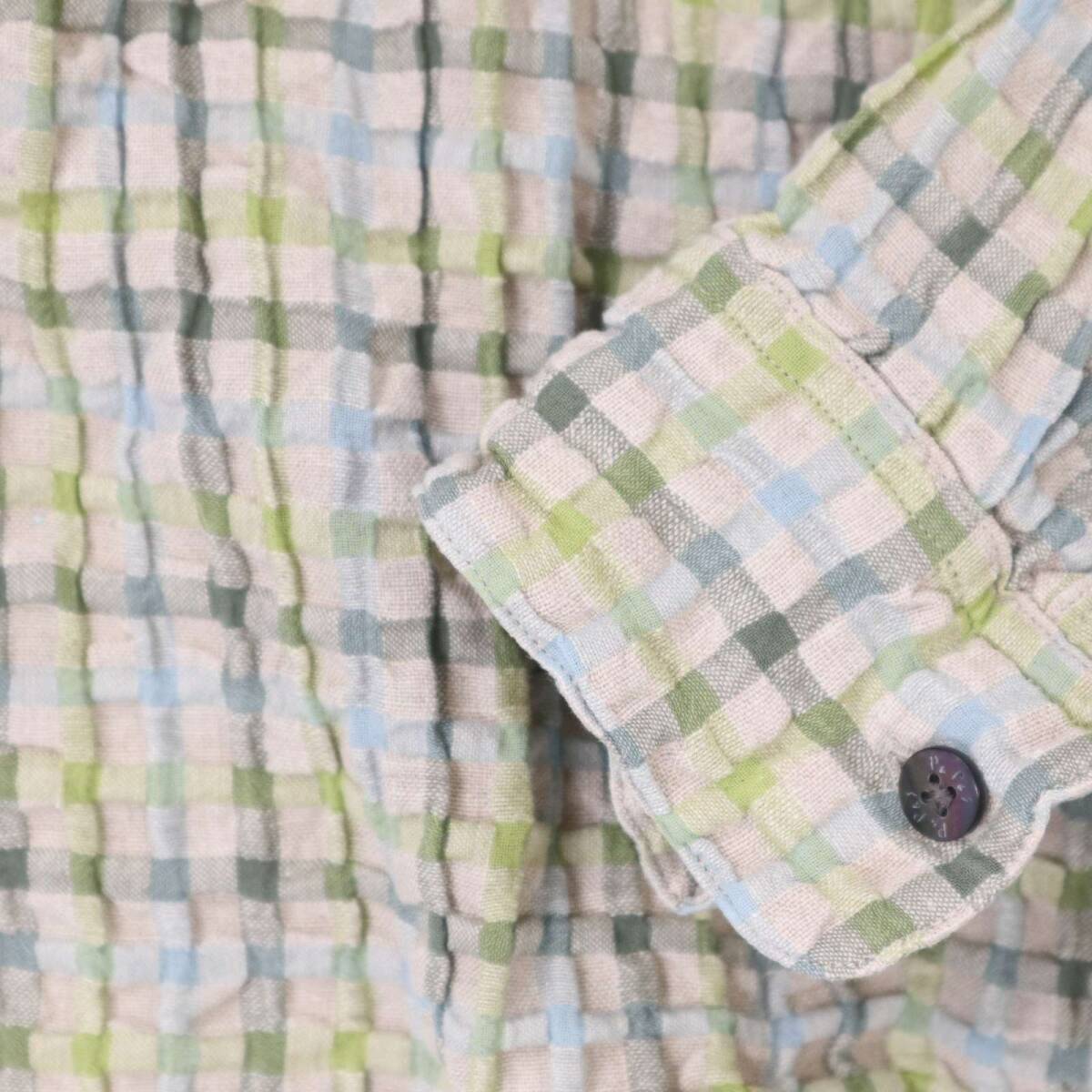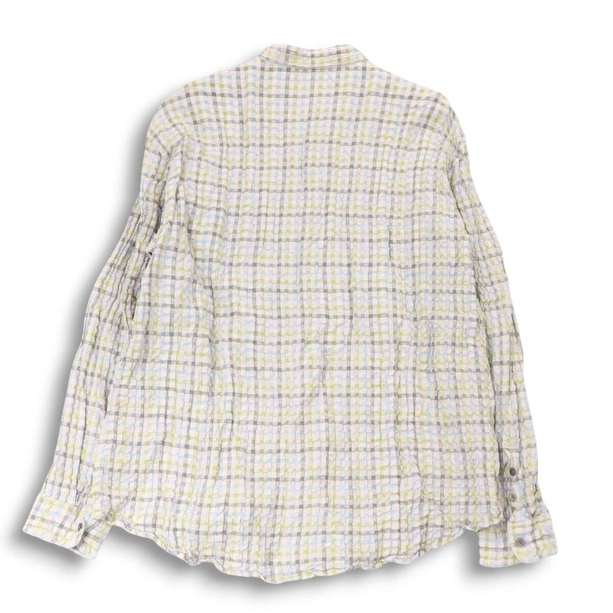 Papas パパス 春夏 ゆったり★ ボタンダウン 長袖 リネン サッカー チェック シャツ Sz.LL メンズ 日本製 大きいサイズ