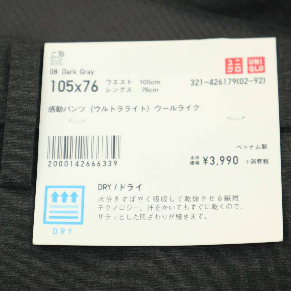 新品 未使用 UNIQLO ユニクロ 春夏 感動パンツ ウルトラライト ウールライク スラックス パンツ Sz.105 メンズ 大きいサイズ