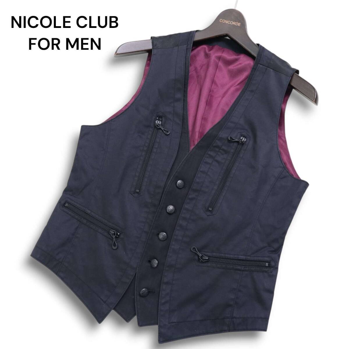 NICOLE CLUB FOR MEN ニコルクラブ フォーメン 通年 レイヤード風★ ベスト ジレ Sz.46 メンズ 黒