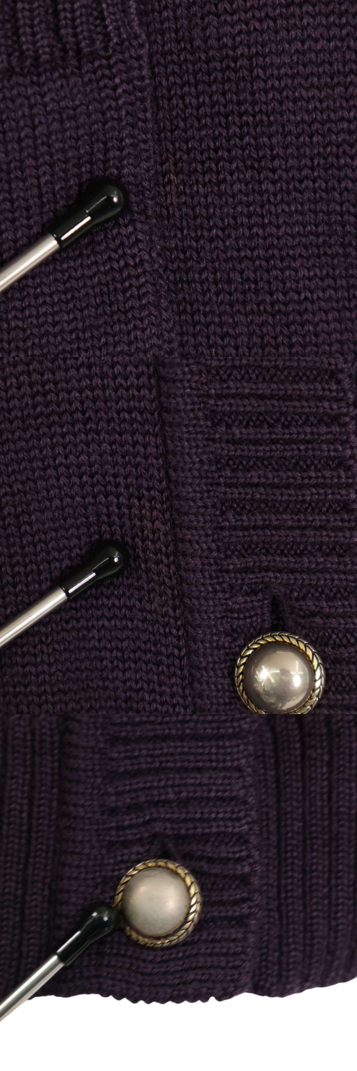 正面中央にごくわずかな小さな変色、正面一番下ボタン表面に擦れがございます。着用に問題はございません。