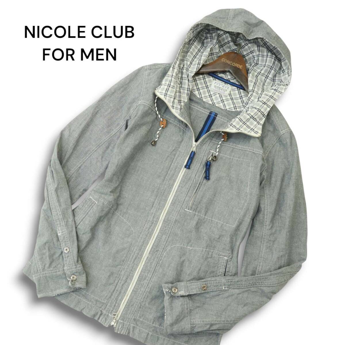 NICOLE CLUB FOR MEN ニコルクラブ フォーメン 通年★ シャンブレー マウンテン パーカー ジャケット Sz.48 メンズ グレー