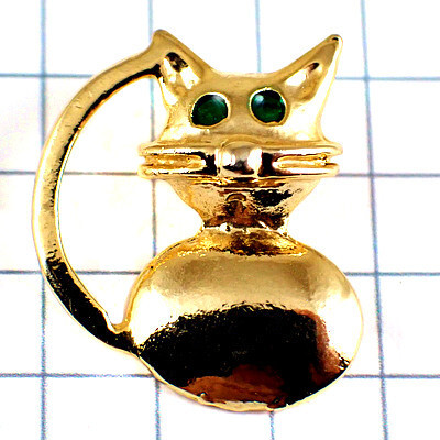 "ピンバッジ・金色の猫ゴールド蝶ネクタイ長い尻尾"の商品説明 | |