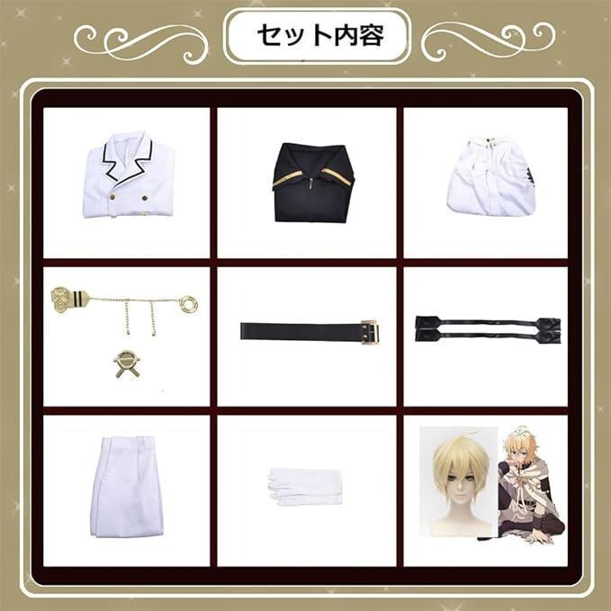 ご覧いただき誠にありがとうございます。 商品名:百夜ミカエラ コスプレ 素材 :ポリエステル、綿 内容 :服セット+ウイッグ 靴は別のページからご購入お願い致します。 サイズ:XS、S、M、L、XL、2XL(詳細なサイズ情報はサイズチャートをご参照ください。) 当商品は大人気アニメキャラクター『終わりのセラフ』のコスプレ衣装セットです。原作をできるだけ忠実に再現できるように細部までこだわり設計、作成しました。 質の高い素材:厳選された素材を使用しており、着心地が良く、耐久性にも優れています。長時間着用しても快適な着心地をお楽しみいただけます。 イベントやコスプレに最適:このコスプレ衣装は、コスプレイベントやテーマパーティー、ハロウィンなど、様々な場面で活躍します ご購入前の知らせ,必ずご確認ください。 ①沖縄方面送料追加必要なので・沖縄お届けは別途ページを設けておりますので、そちらよりお手続きをお願いいたします。 ②発送について 注文状況によっては発送までお時間を頂く場合がございますが基本的に設定期間内(土、日、祝日除外)発送が行います,お急ぎの方のご注文はトラブルとなる恐れがありますので、ご遠慮下さい ③梱包について 商品は簡易包装でのお届けとなります。保管時や輸送時に外装の破損や多少の汚れがある場合もございます。 中身に問題がなければ、ご容赦いただけますと幸いです。外装箱の破損等で商品自体に問題がある場合は取引メッセージにてご連絡ください。 ④キャンセルについて 当店ではご購入後のお客様都合によるキャンセルは受け付けておりません。ご注文と異なる商品が届いた場合又は商品に欠陥がある場合を除き、返品返金には応じません。商品到着から5日以内にご連絡の上、着払いでご返送ください。