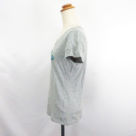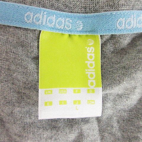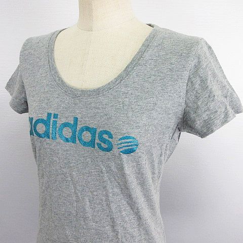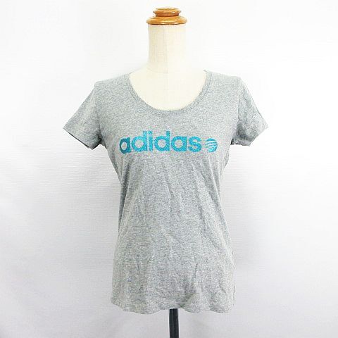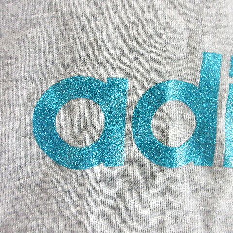 アディダス adidas Tシャツ カットソー 半袖 ラウンドネック ロゴ ラメ L グレー ※EKM レディース