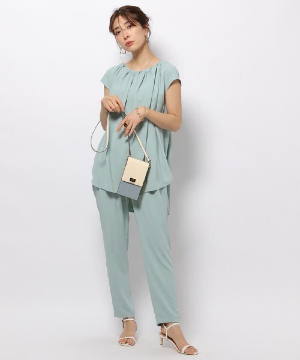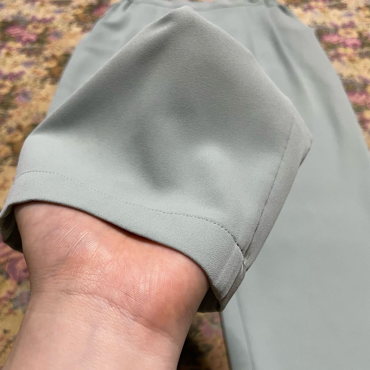 柔らかな素材が裾に少したまるようなシルエットにしているので、柔らかなドレープ感を楽しめます。