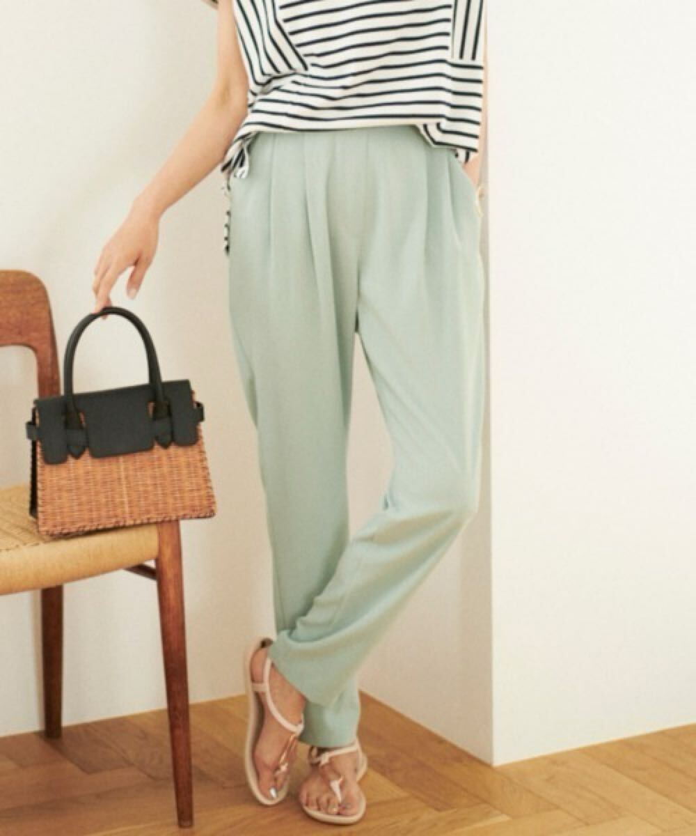 きれいめテーパードパンツフロントにタックをとったテーパードシルエットのパンツ。