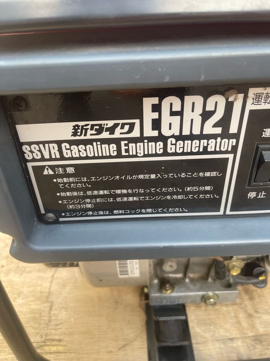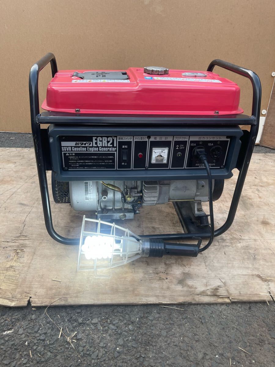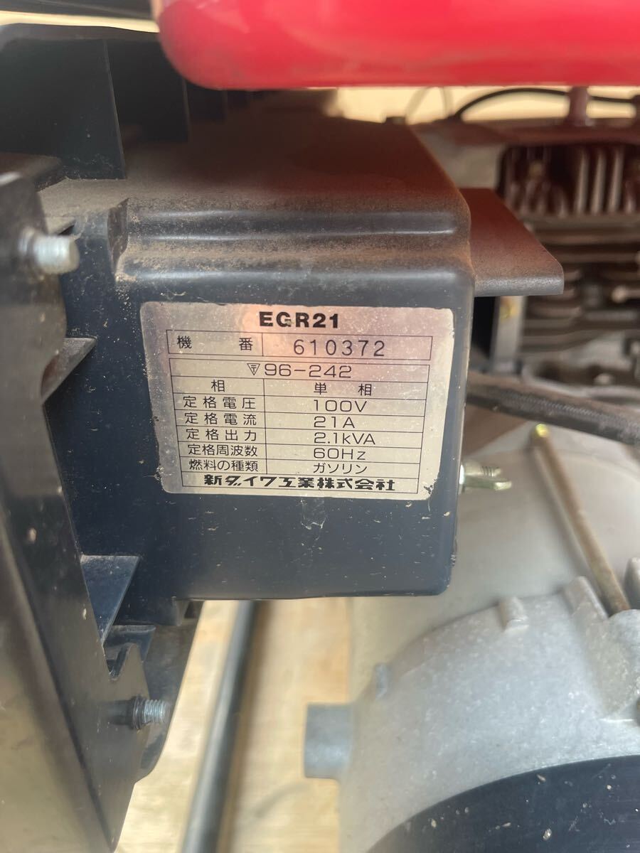 中古品、キャブレターを洗浄、エンジン始動、発電を確認しました、発電良好です、傷、汚れ、錆などがあります、現状渡し、ご了承の上に入札をお願いします。 ※動画確認はこちら: Shindaiwa 新ダイワ ガソリンエンジン発電機 EGR21